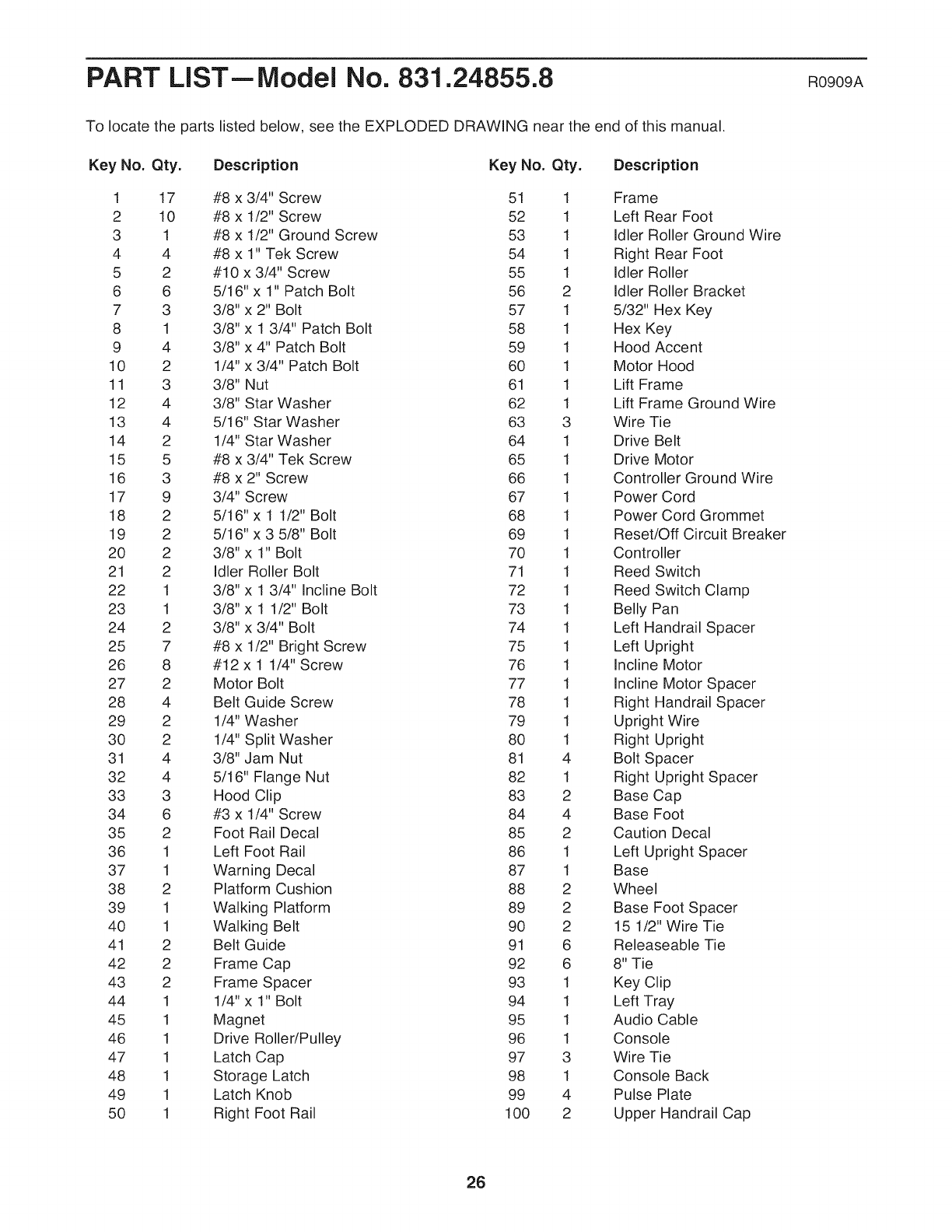 EXPLODED DRAWING Am Model No. 831.24855.8 R0909A