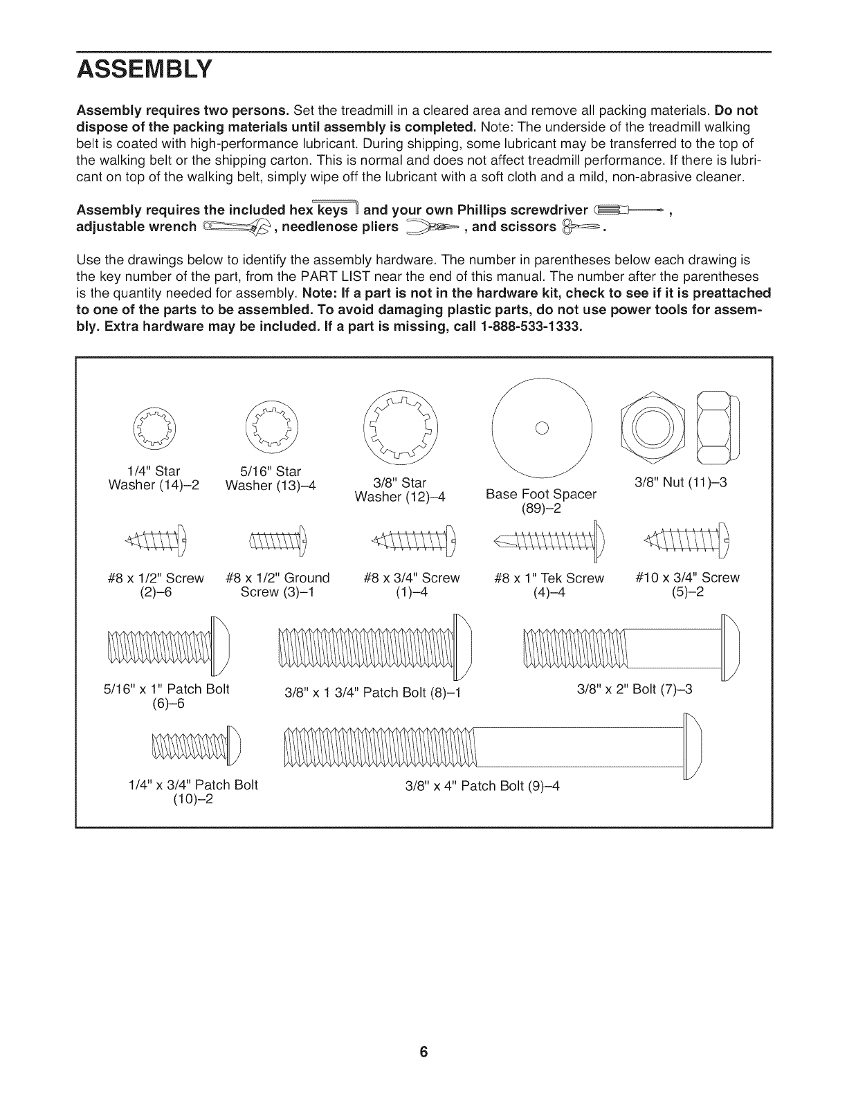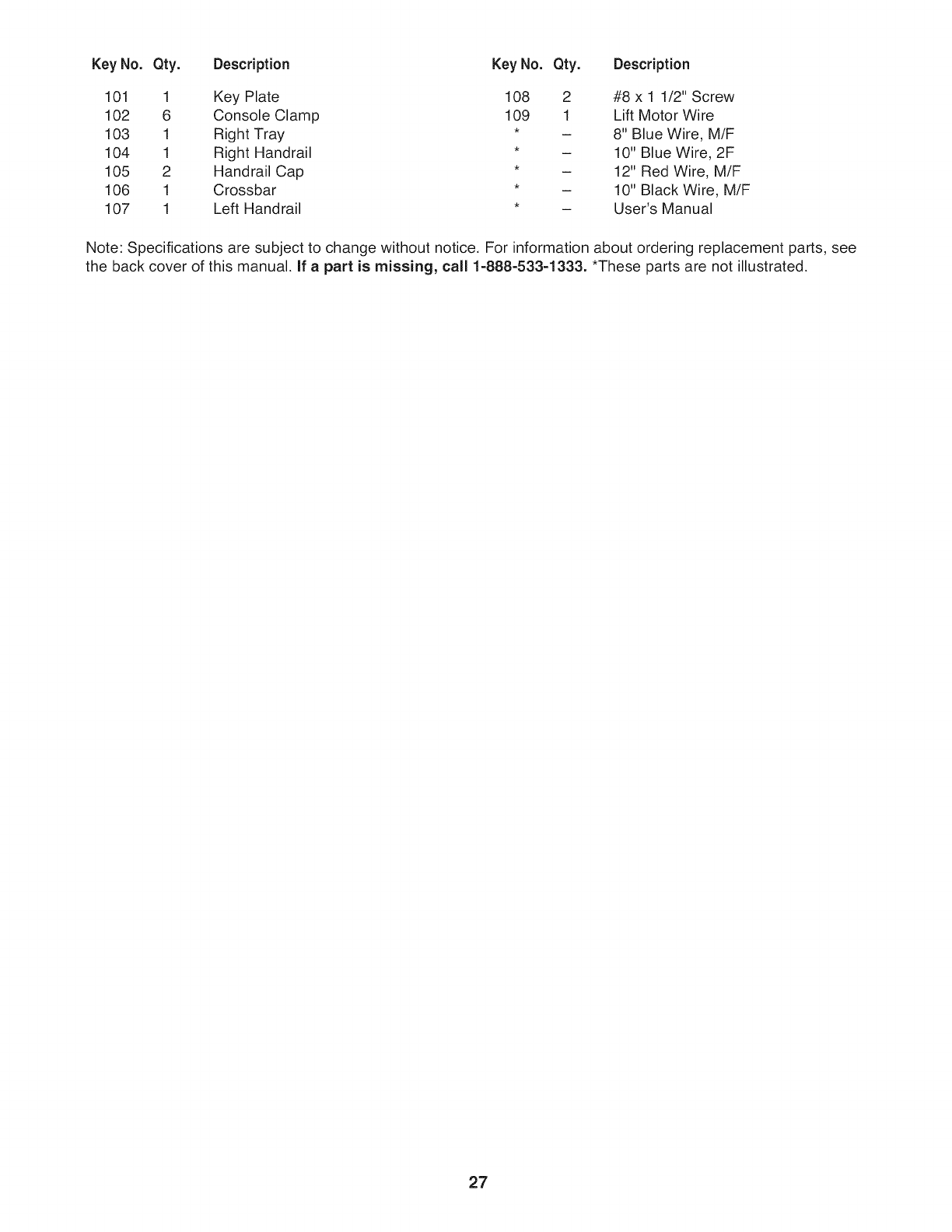 the back cover of this manual. If a part is missing, call 1-888-533-1333. *These parts are not illustrated.