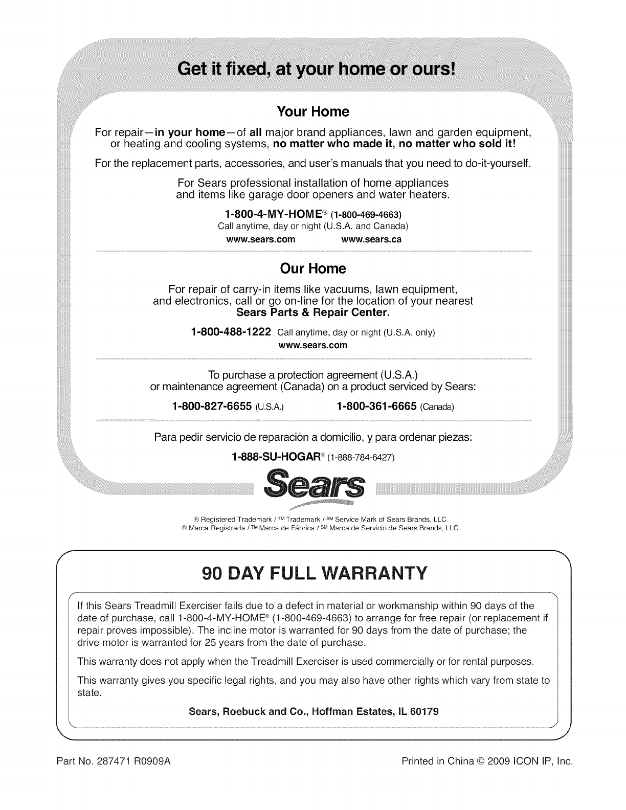 Part No. 287471 R0909A Printed in China © 2009 ICON IP, Inc.