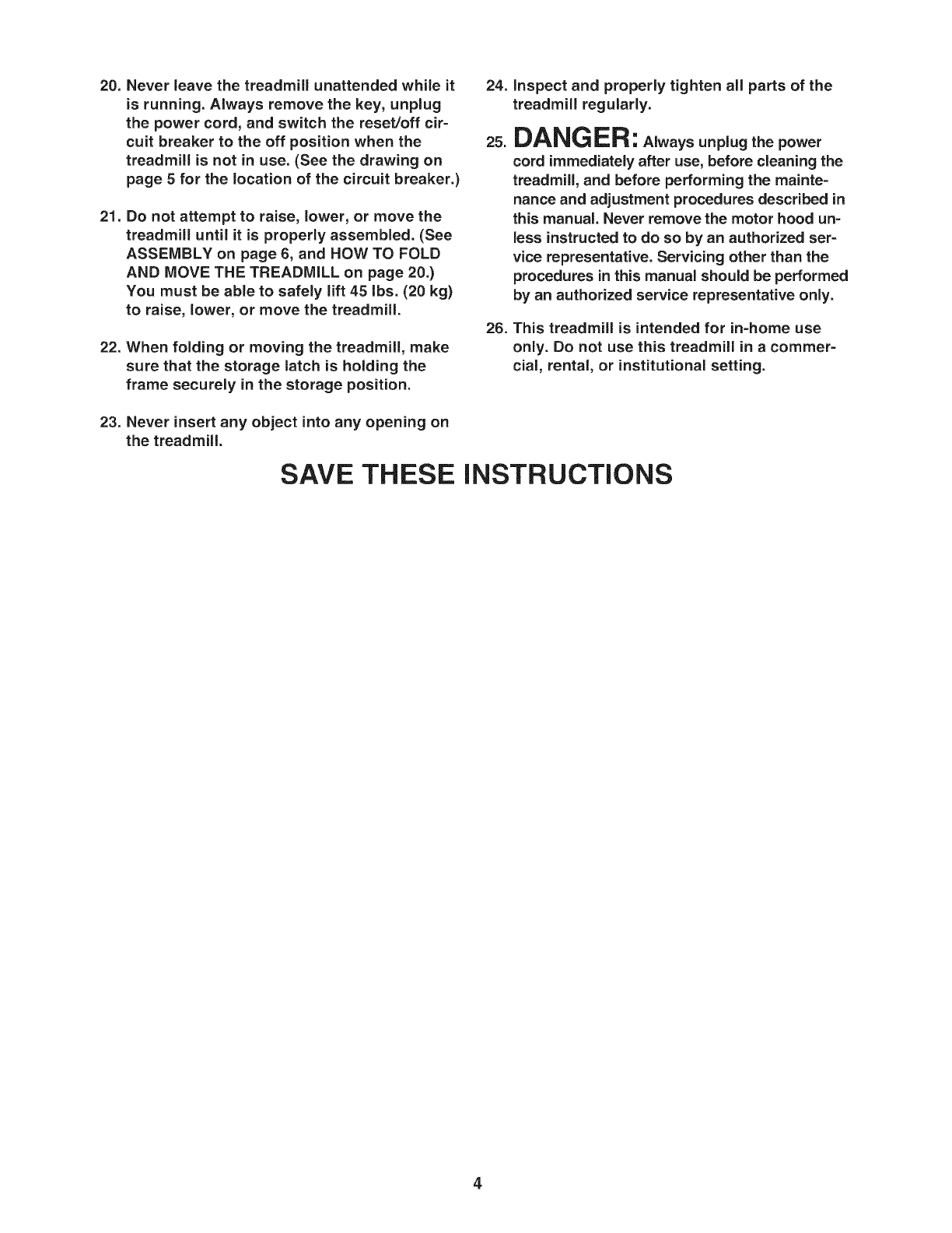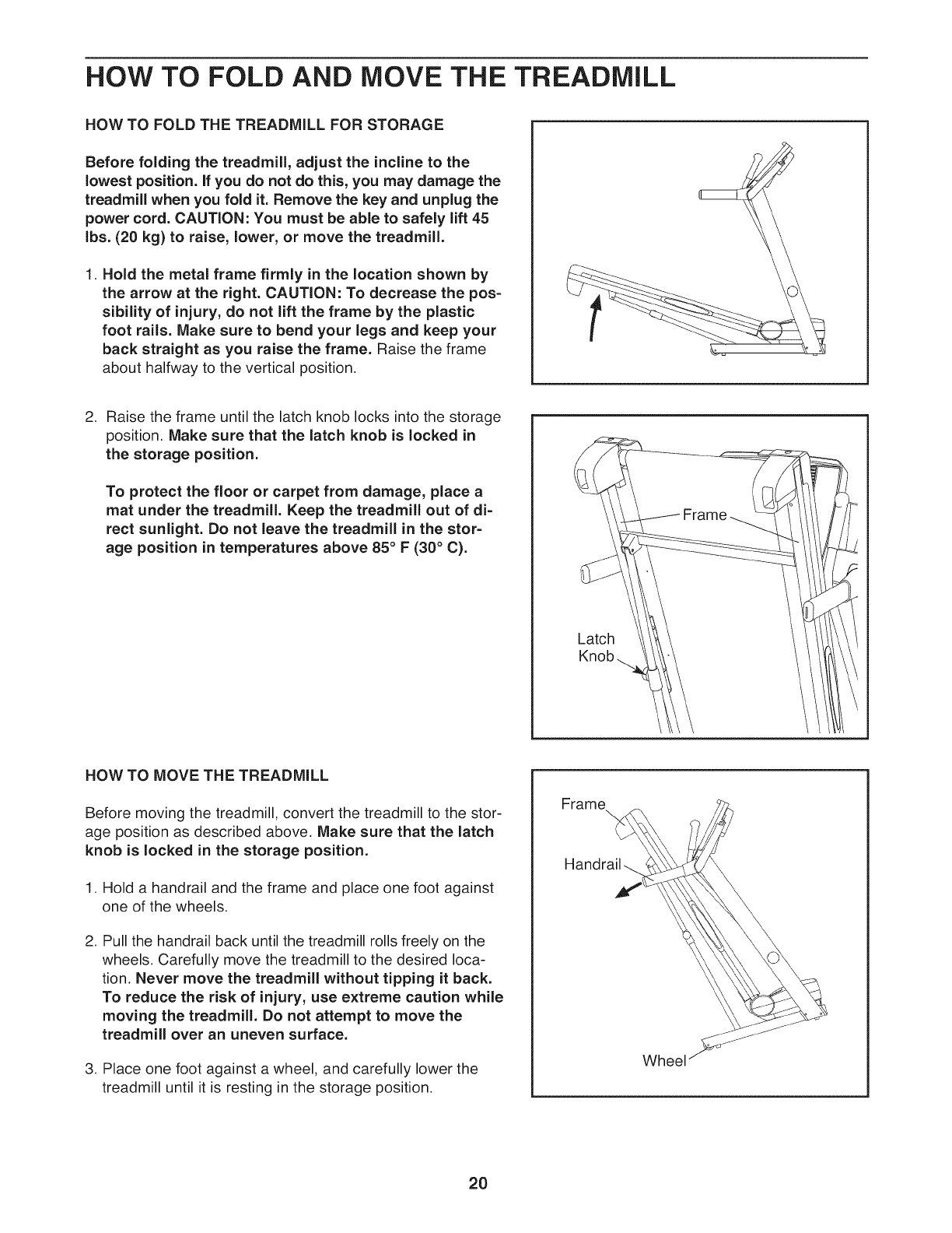 HOW TO FOLD AND MOVE THE TREADMILL .................................................. 20