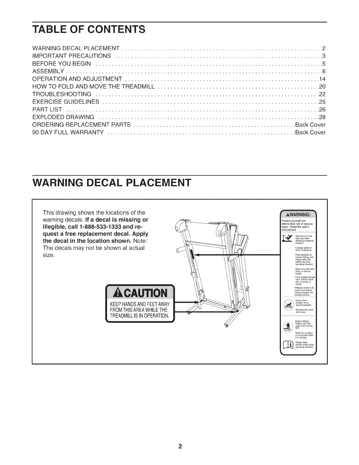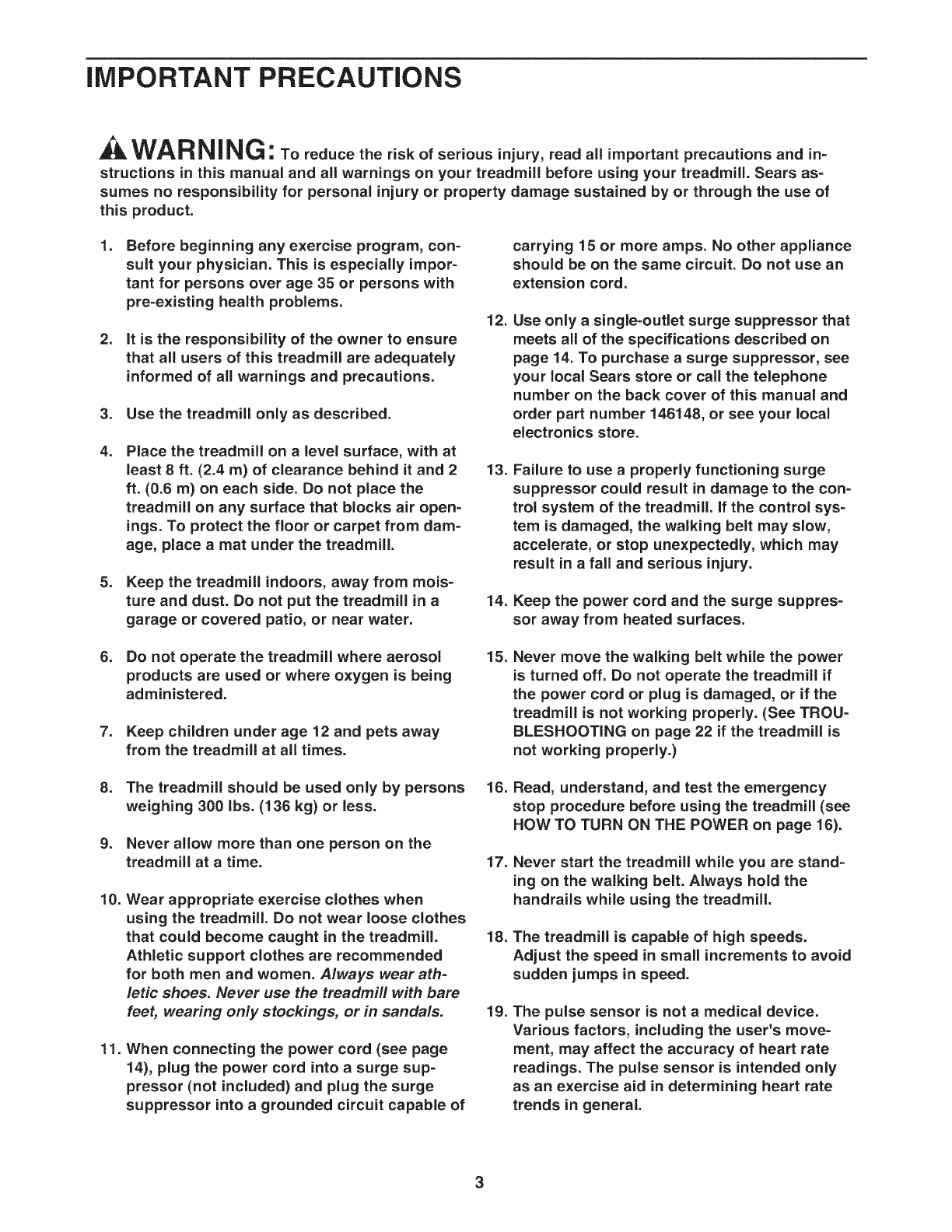 structions in this manual and all warnings on your treadmill before using your treadmill. Sears as-