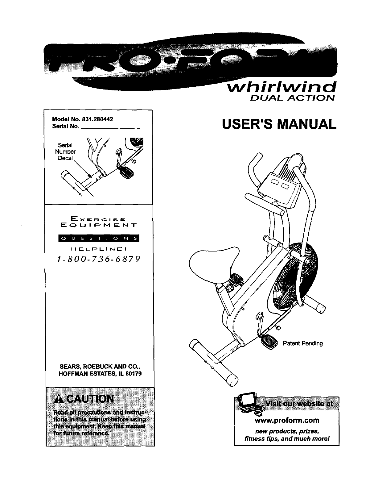 Proform 831280442 User Manual WHIRLWIND Manuals And Guides L0312032