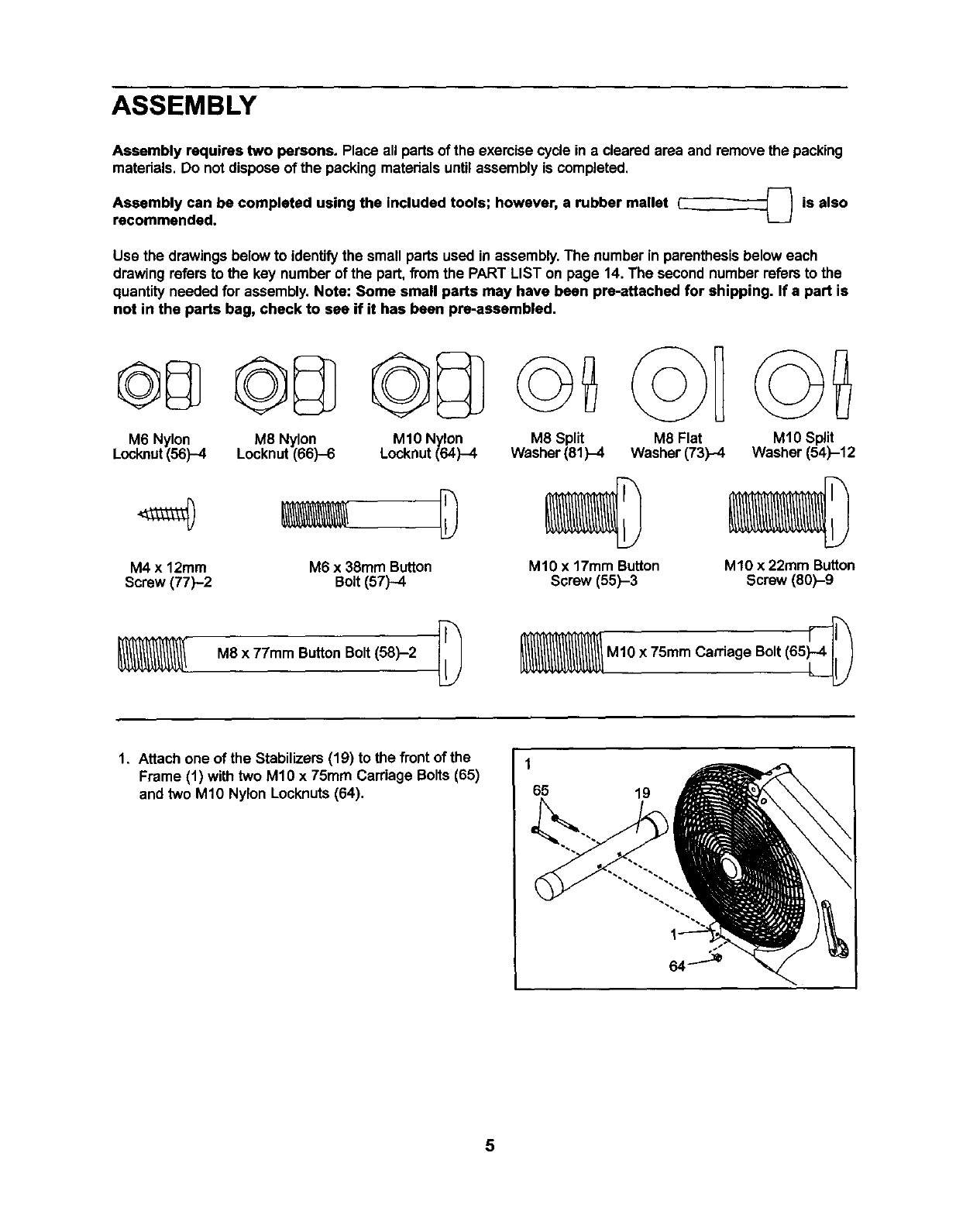 1. Attach one of the Stabilizers (19) to the front of the