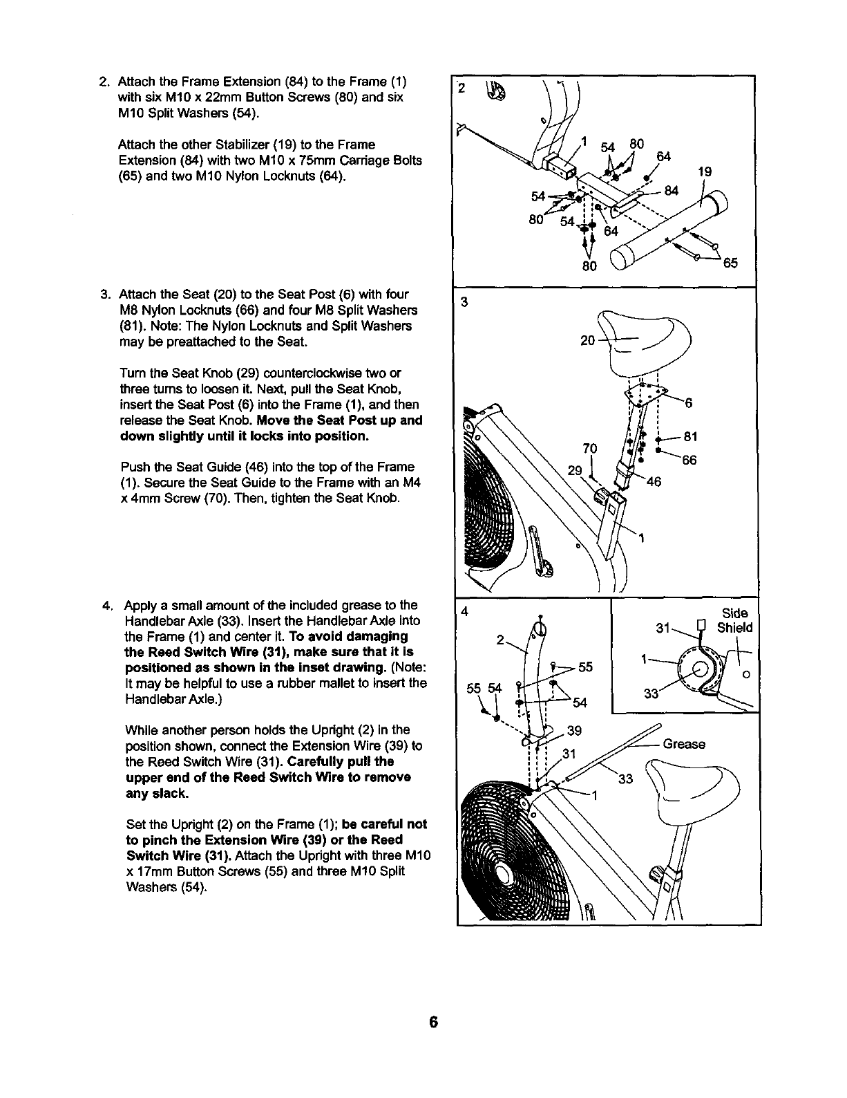 Assembly requires two persons. Place all partsof the exemise cycle in a cleared area and remove the packing