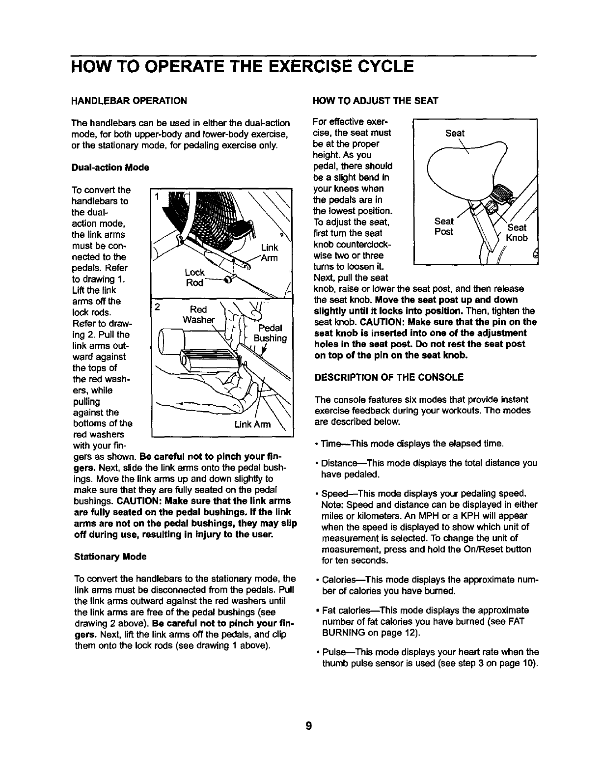 HOW TO OPERATE THE EXERCISE CYCLE ................................................. 9