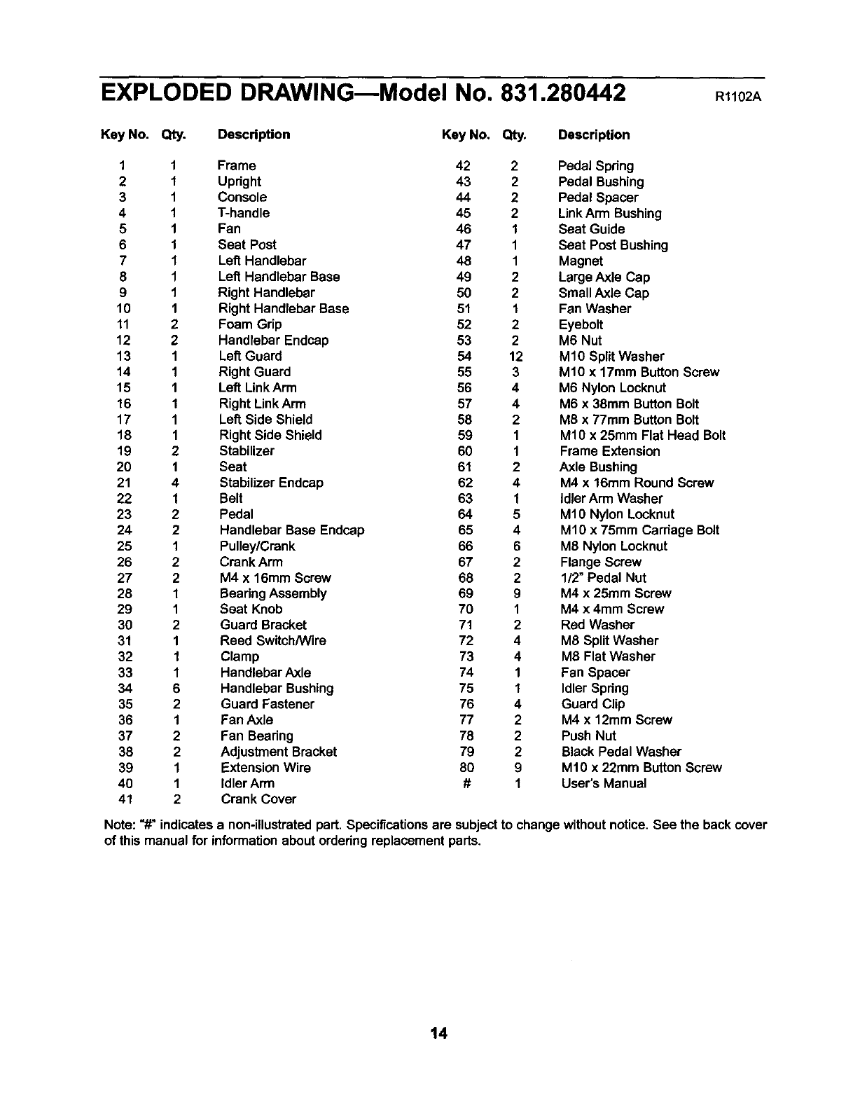 Note: "#" indicatesa non-illustratedpart. Specifications are subjectto change withoutnotice. See the back cover