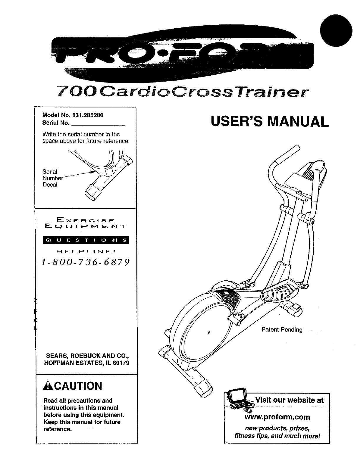 User Manual: Proform 831285280 831285280 PROFORM ELLIPTICAL - Manuals and Guides View the owners manual for your PROFORM ELLIPTICAL #831285280. Home:Fitness Equipment Parts:Proform Parts:Proform ELLIPTICAL Manual