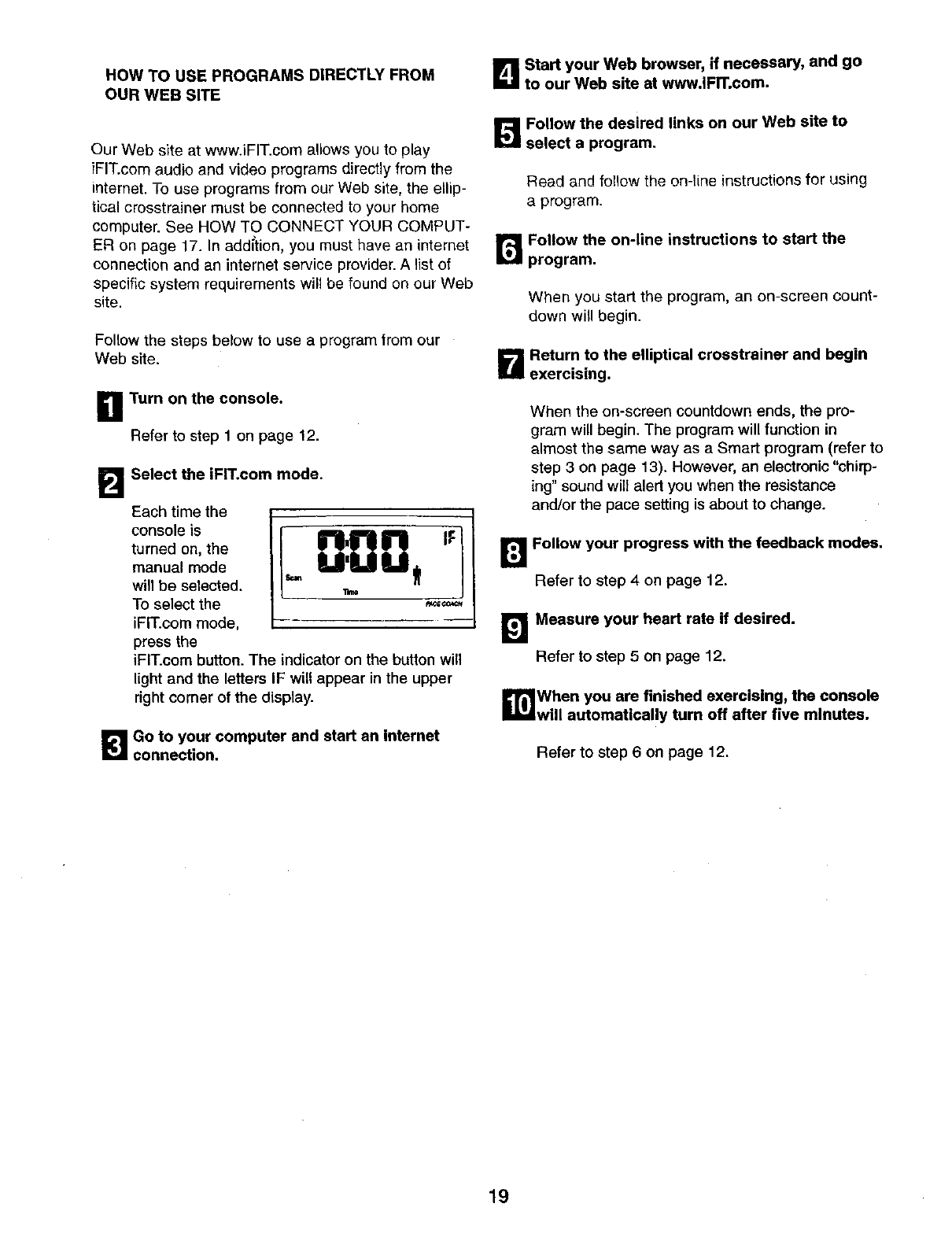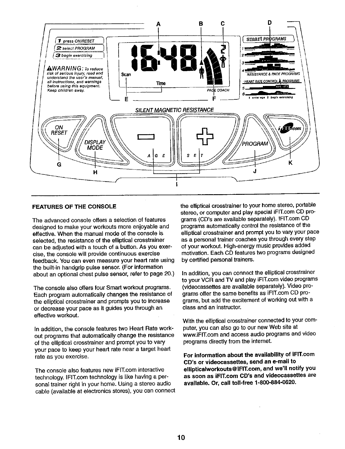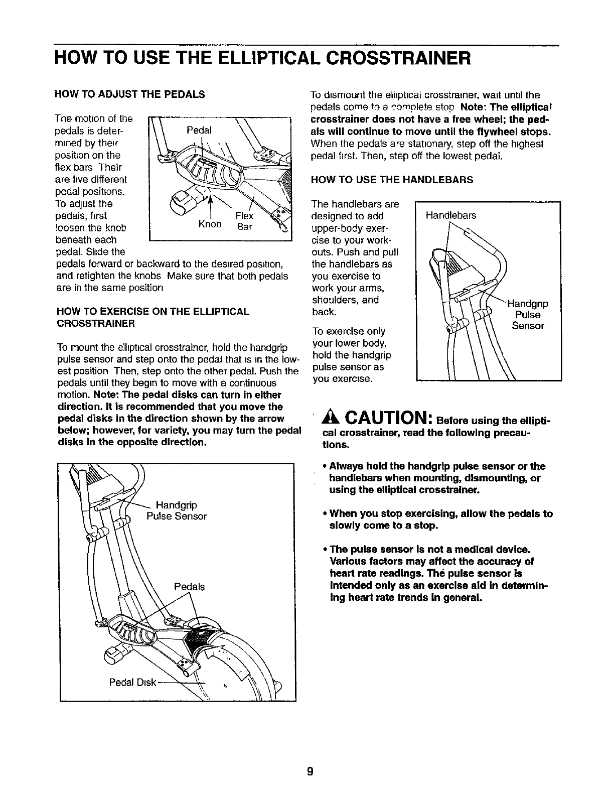 HOW TO USE THE ELLIPTICAL CROSSTRAINER ............................................. 9
