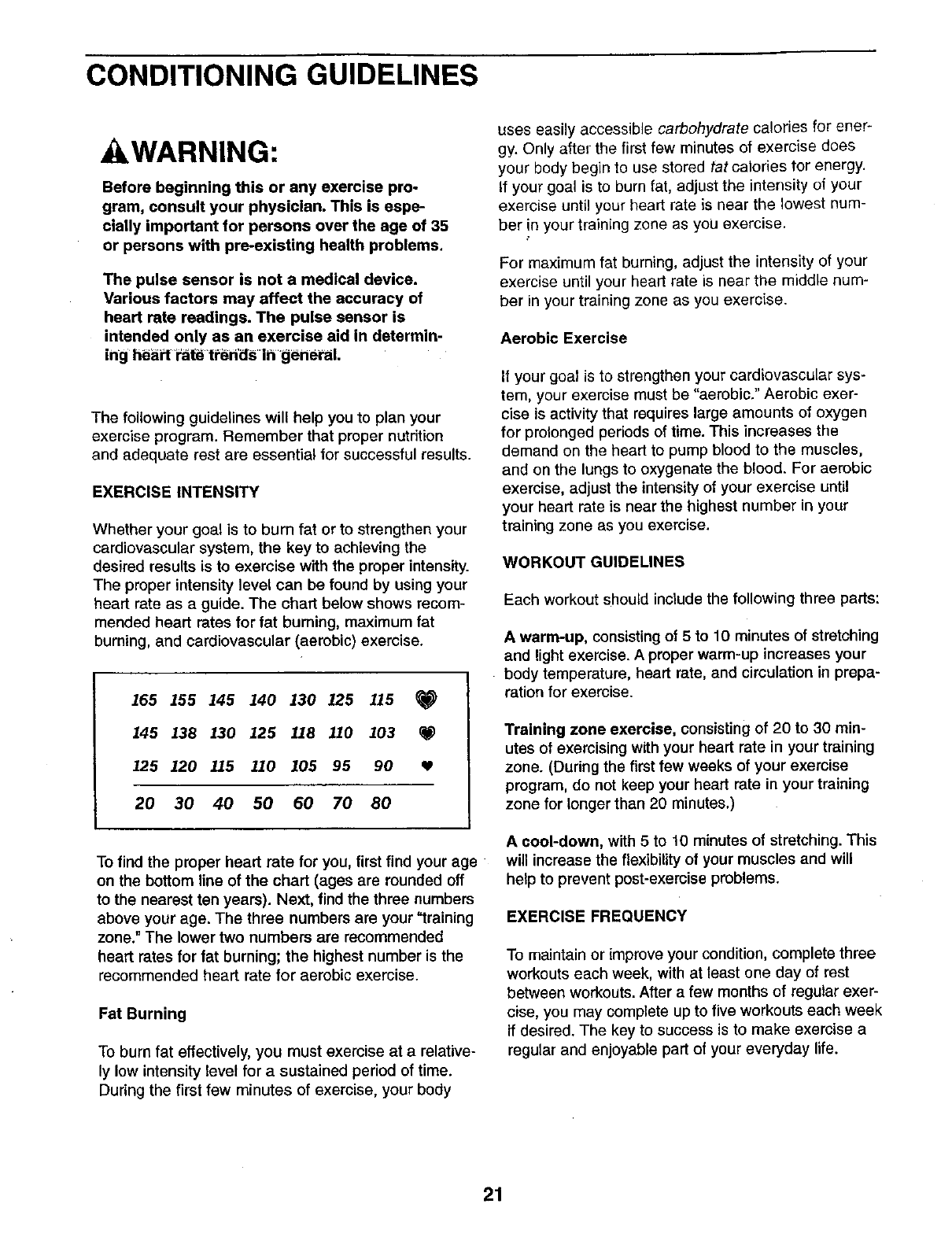 CONDITIONING GUIDELINES ............................................................ 21