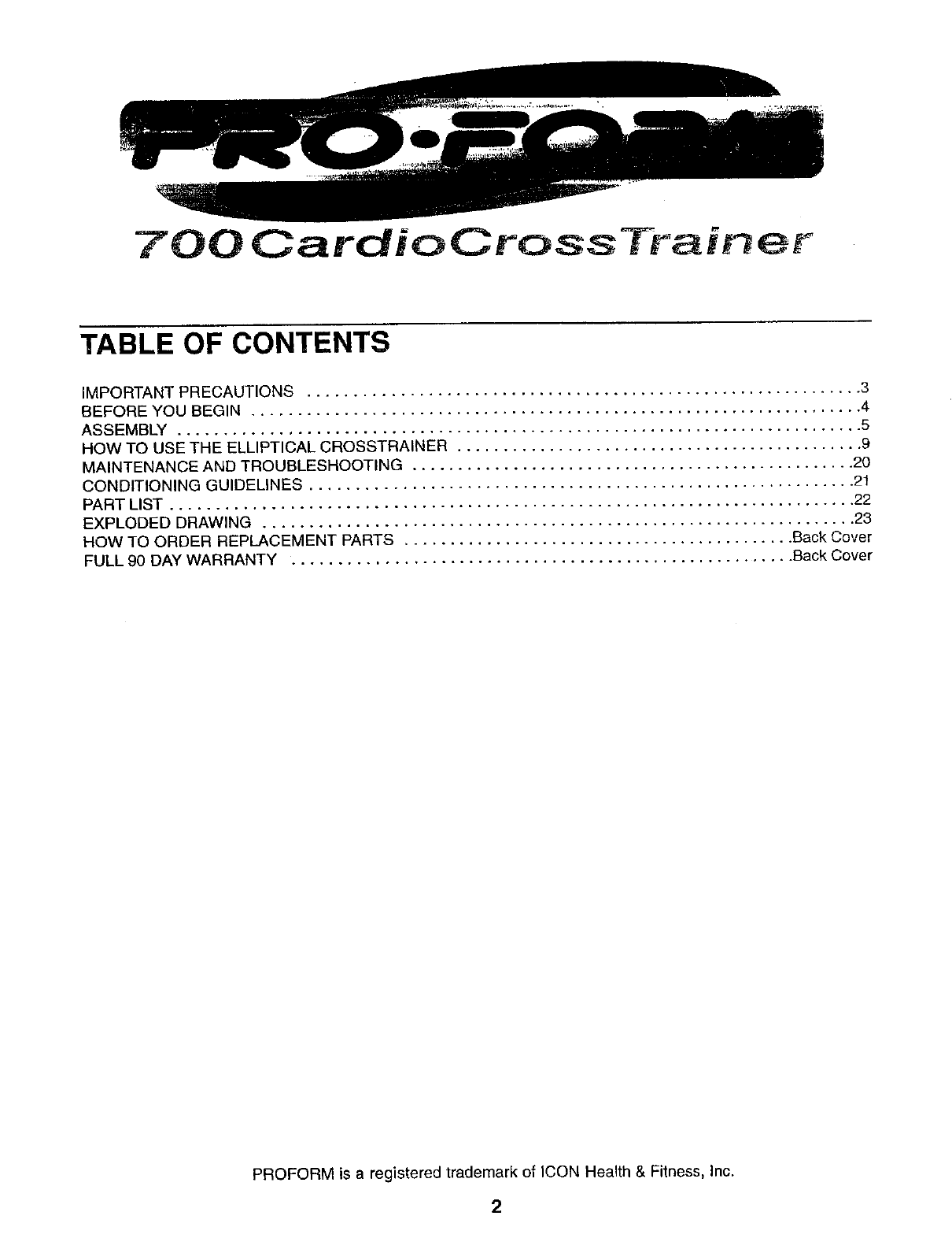 PROFORM is a registered trademark of ICON Health & Fitness, Inc.