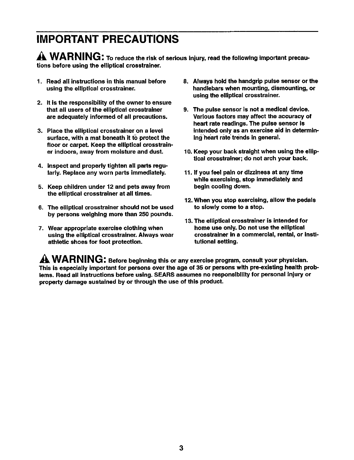 tions before using the elliptical crosstrainer.