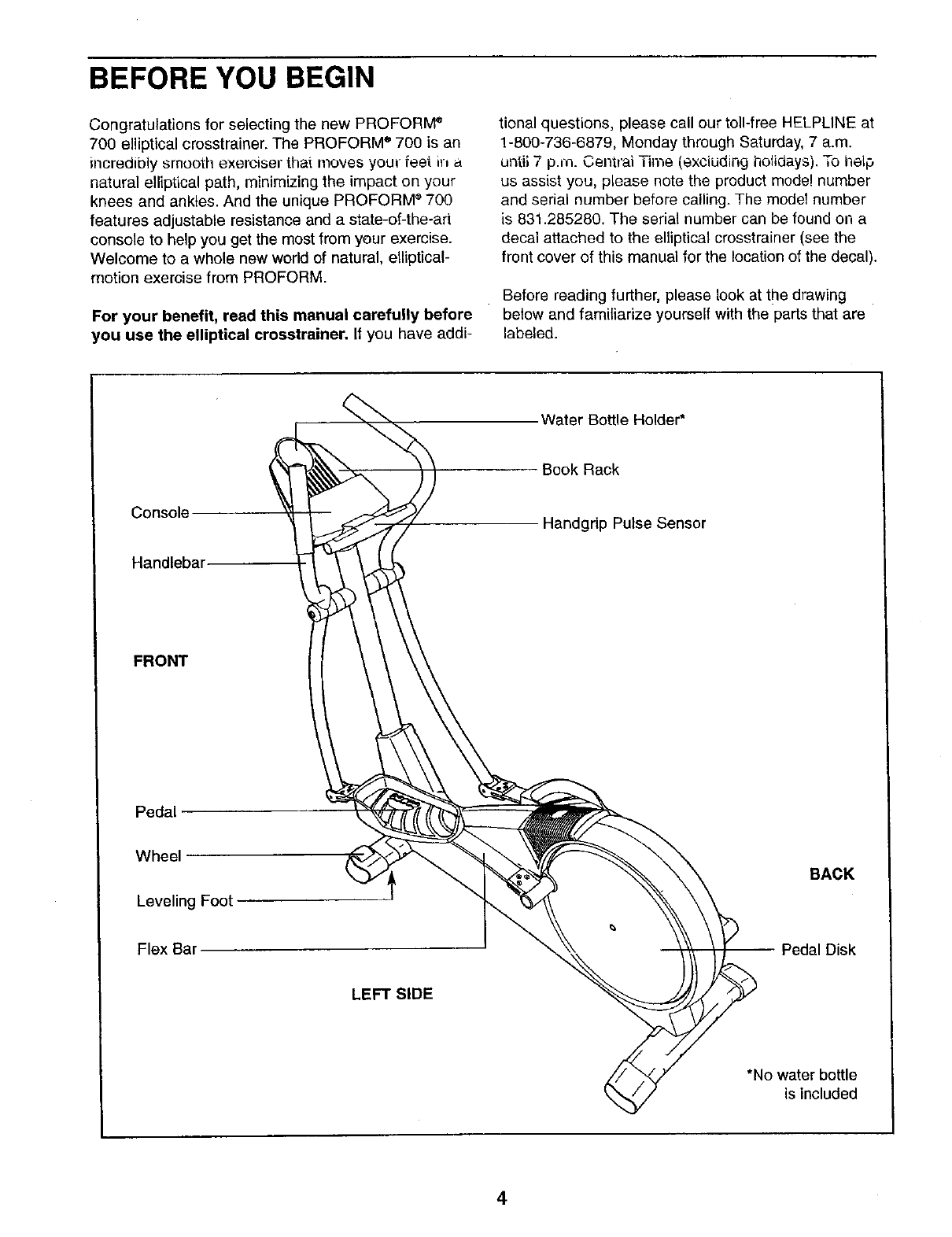 • The NAME OF THE PRODUCT (PROFORM ®700)