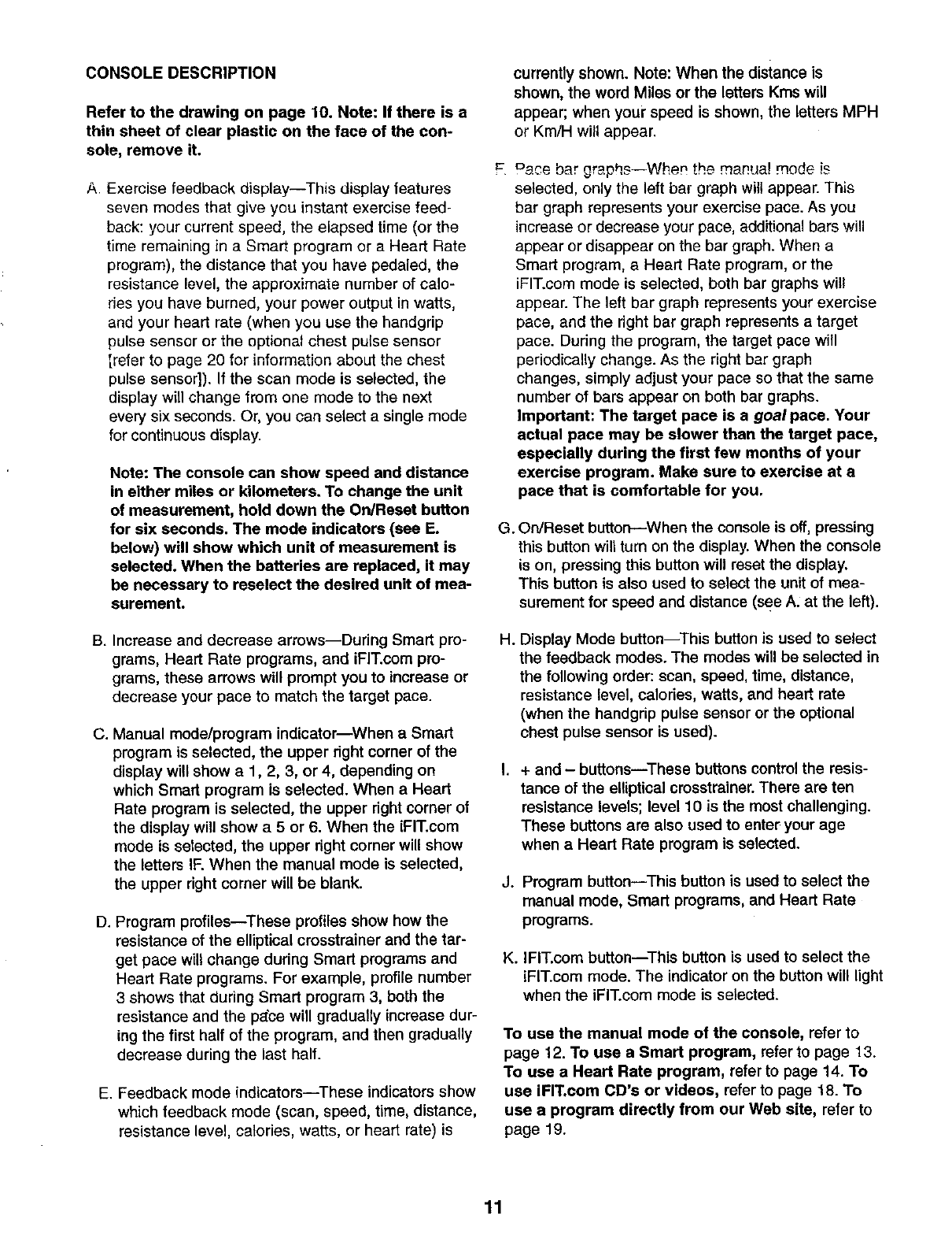 Proform 831285280 User Manual ELLIPTICAL Manuals And Guides L0111099