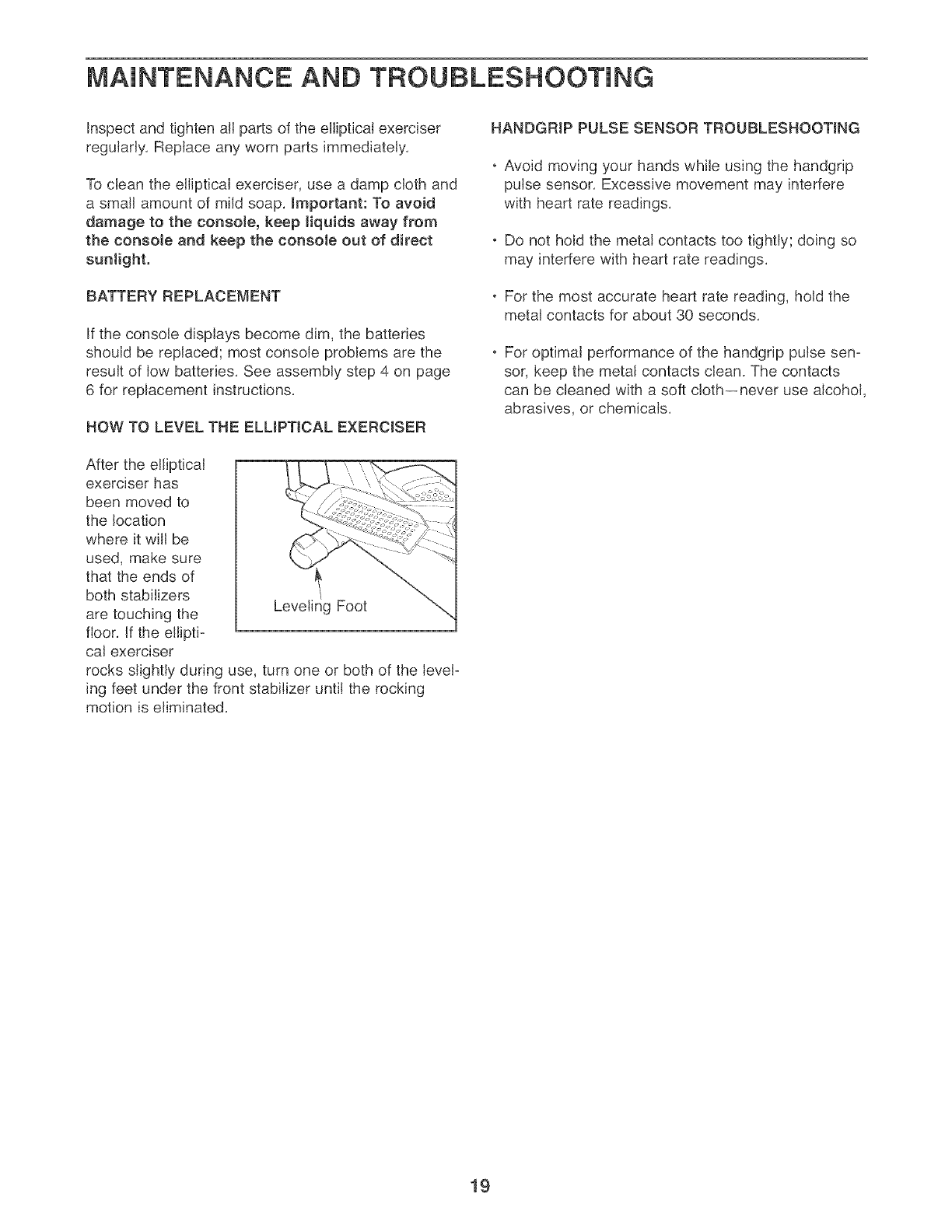 MAINTENANCE AND TROUBLESHOOTING ................................................... 19