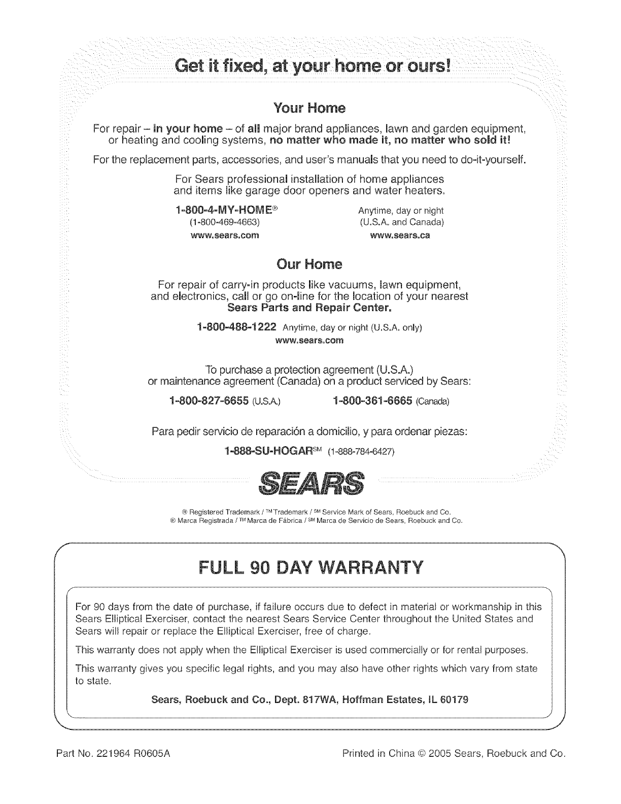 Part No. 221964 R0605A Printed in China ¢_2005 Sears, Roebuck and Co.