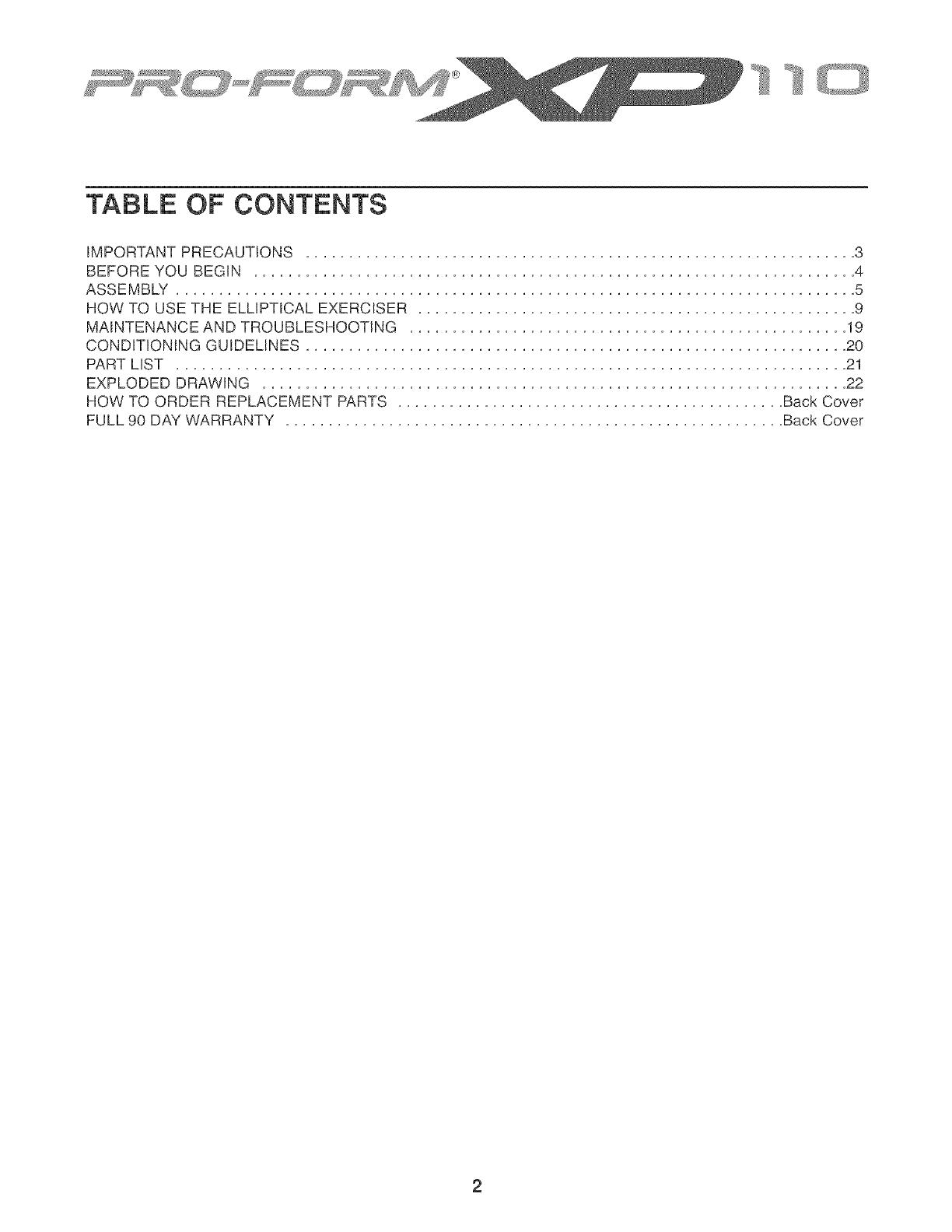 Proform 831285430 User Manual XP110 Manuals And Guides L0520750