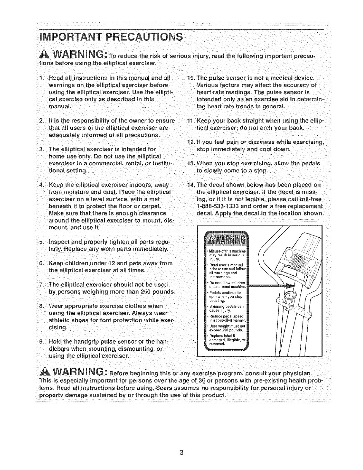 Keep the eHipticaJ exerciser indoors, away 14. The decal shown below has been placed on