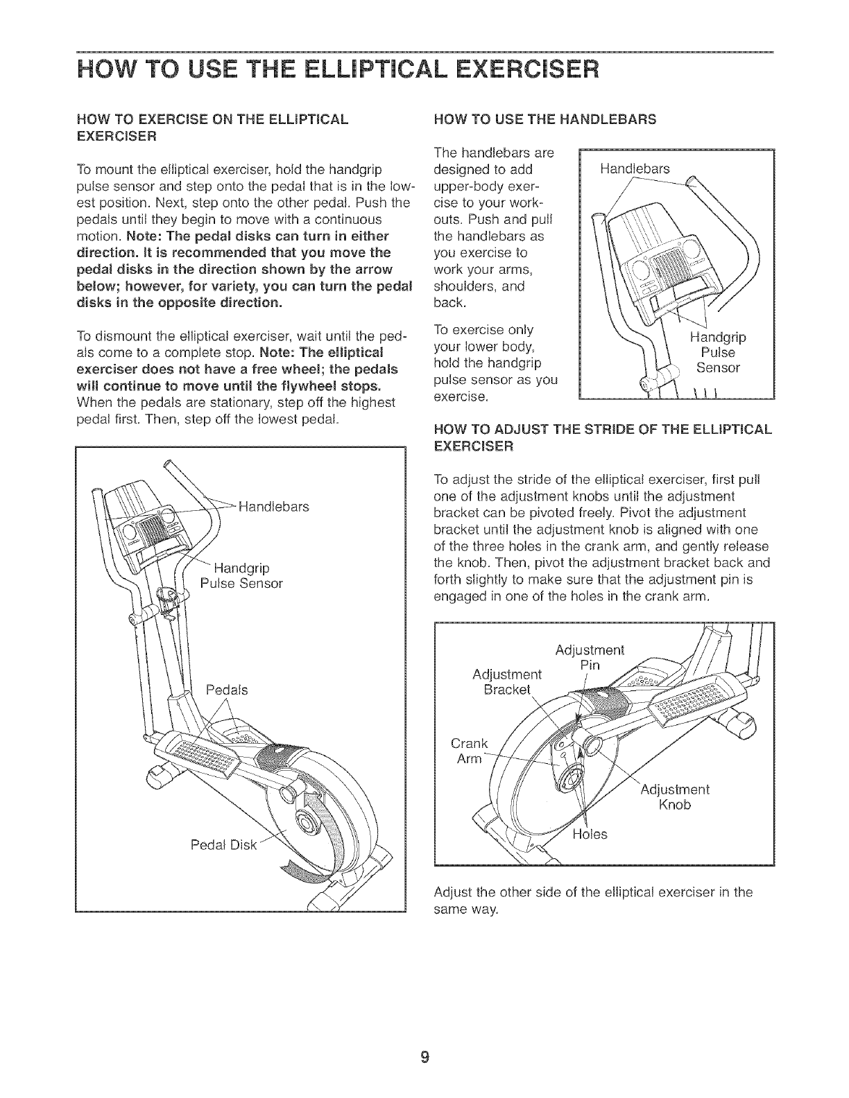 HOW TO USE THE ELLIPTICAL EXERCISER ................................................... 9