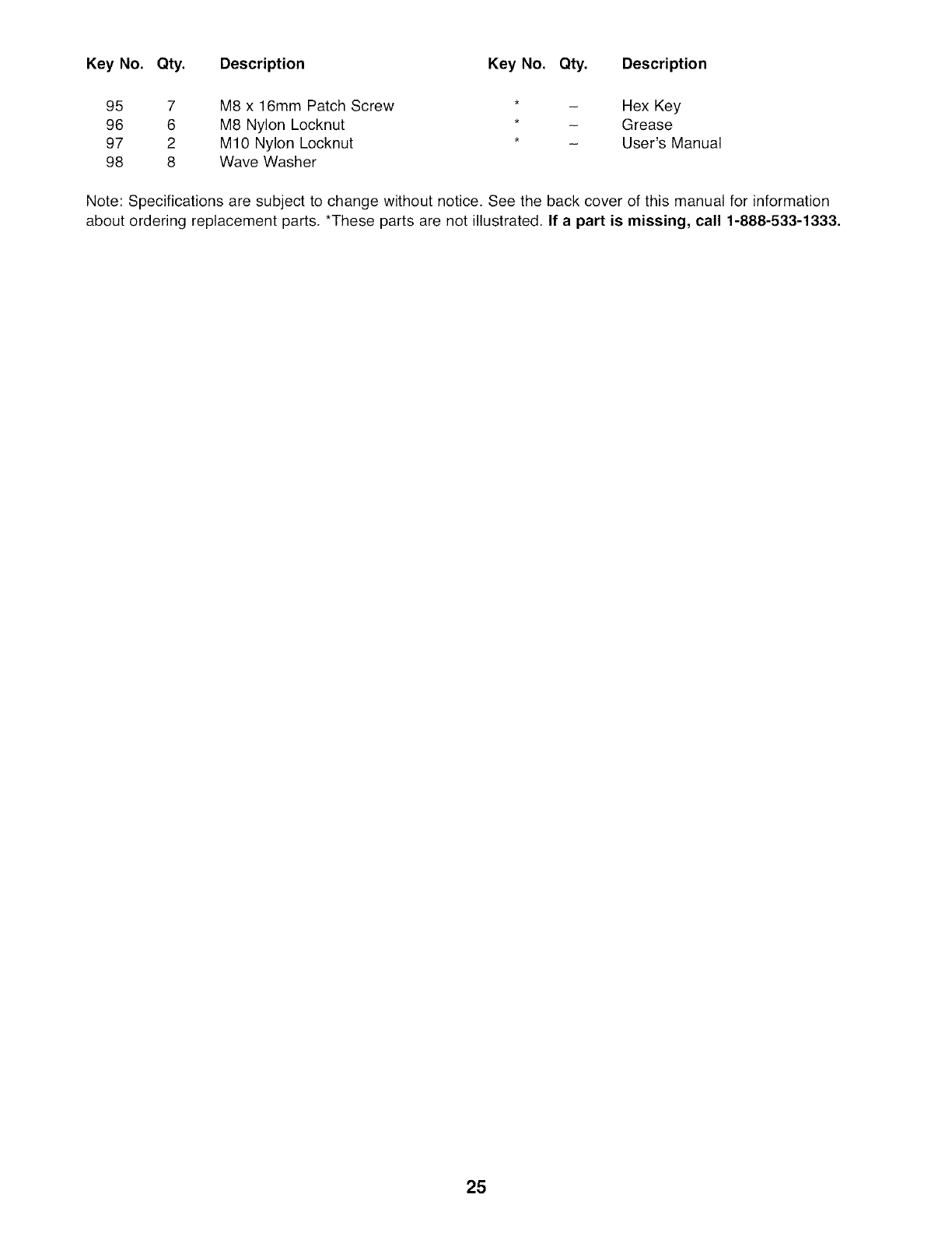 about ordering replacement parts. *These parts are not illustrated. If a part is missing, call 1-888-533-1333.