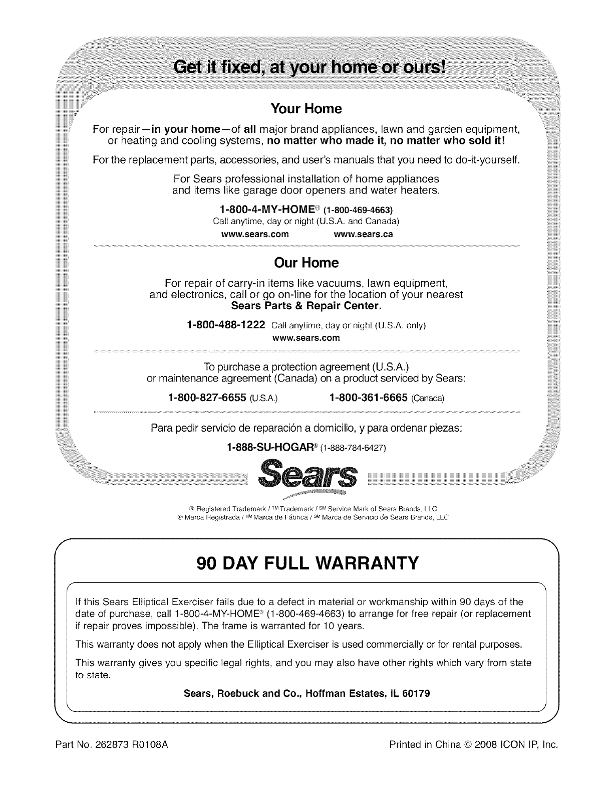 Part No. 262873 R0108A Printed in China © 2008 ICON IP, Inc.
