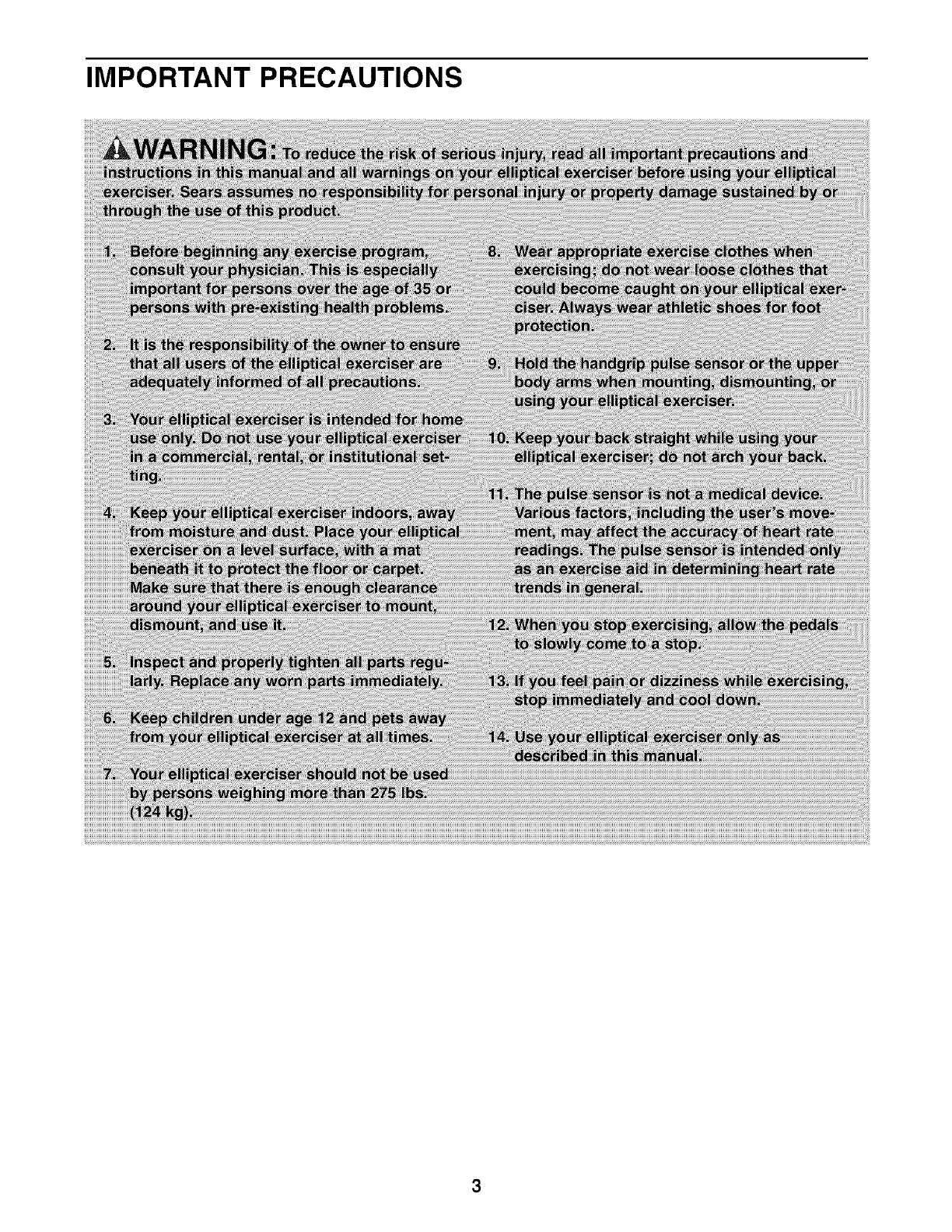 This warranty does not apply when the Elliptical Exerciser is used commercially or for rental purposes.