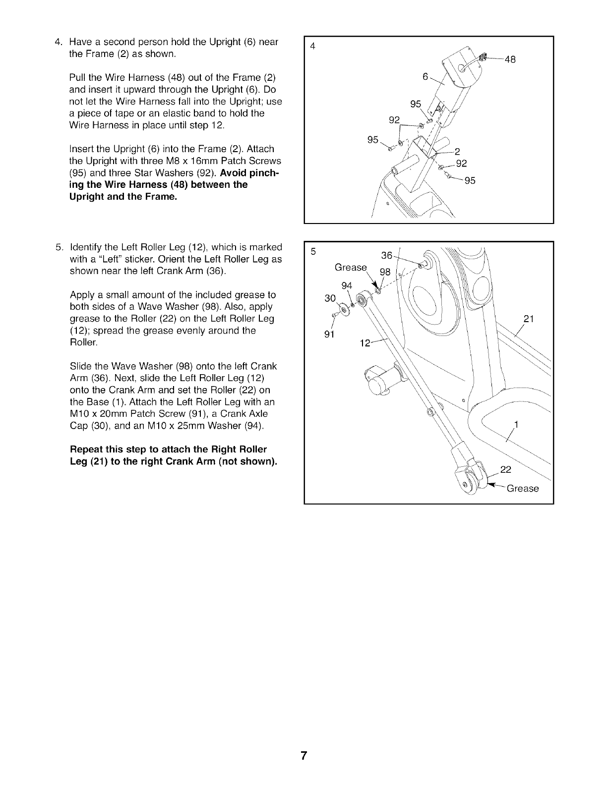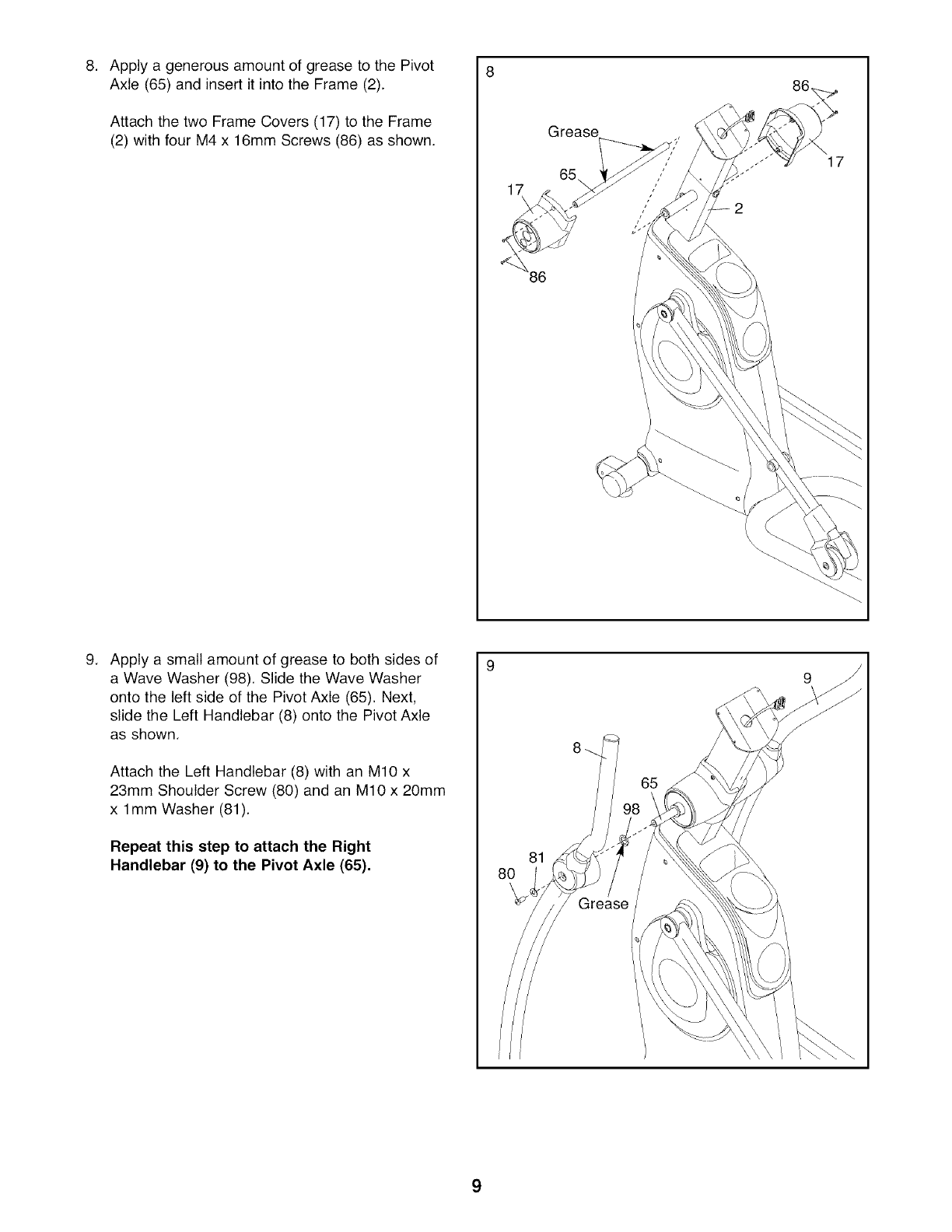 Assembly requires two persons. Place all parts of the elliptical exerciser in a cleared area and remove the