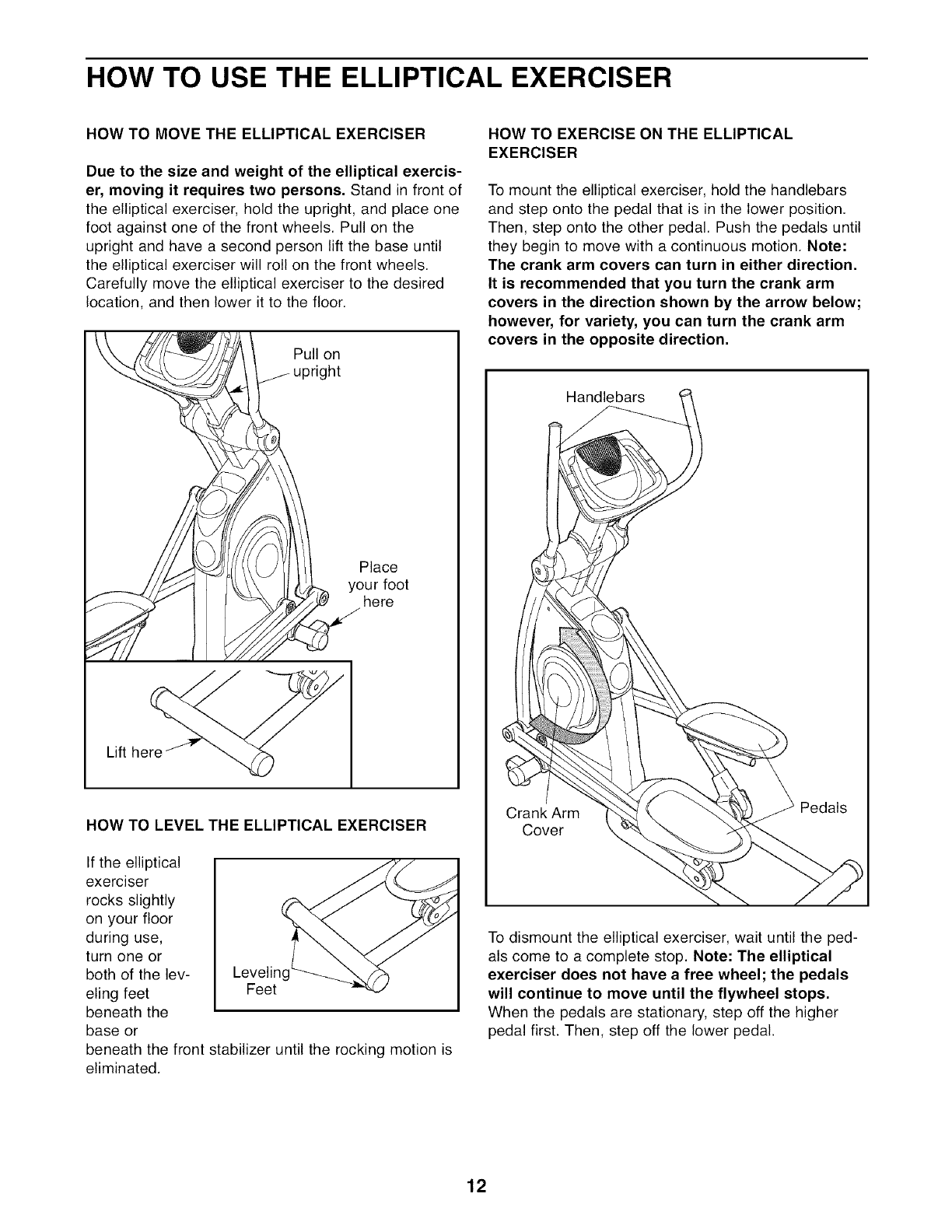 HOW TO USE THE ELLIPTICAL EXERCISER .................................................. 12