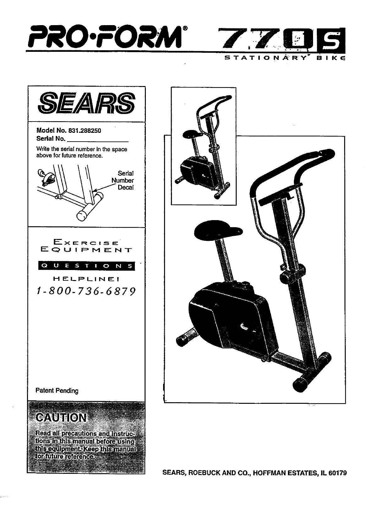 User Manual: Proform 831288250 831288250 PROFORM PROFORM 770S BIKE - Manuals and Guides View the owners manual for your PROFORM PROFORM 770S BIKE #831288250. Home:Fitness Equipment Parts:Proform Parts:Proform PROFORM 770S BIKE Manual