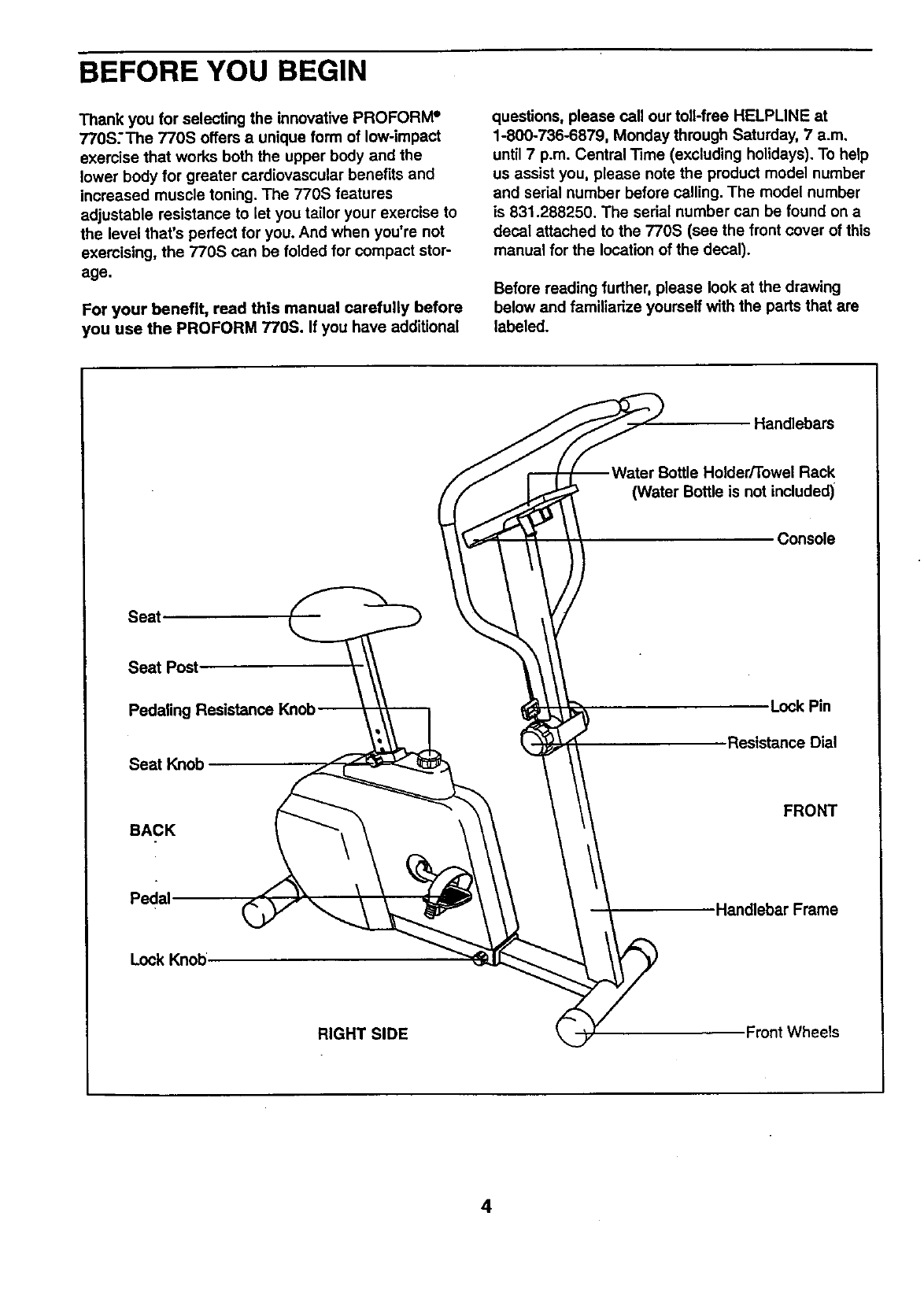 Proform 831288250 User Manual 770S BIKE Manuals And Guides 99020066