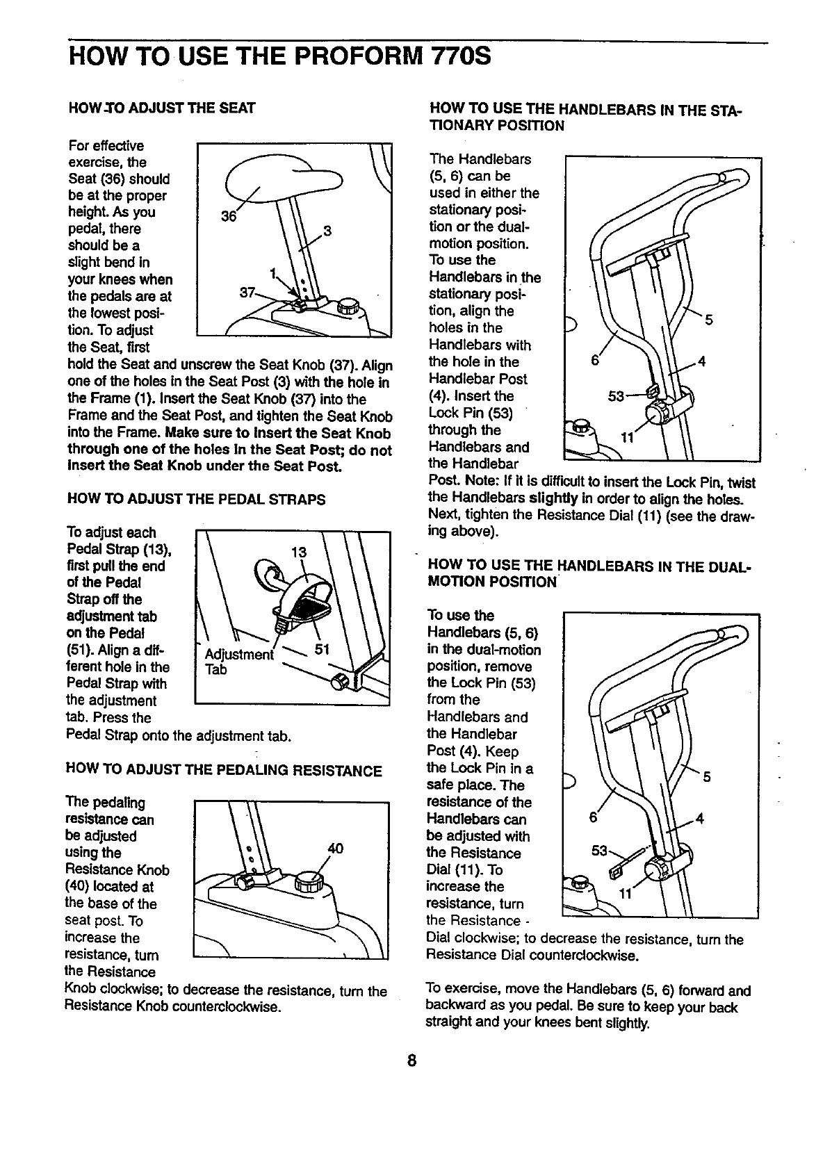 HOW TO USE THE PROFORM 770S ....................................................... 8