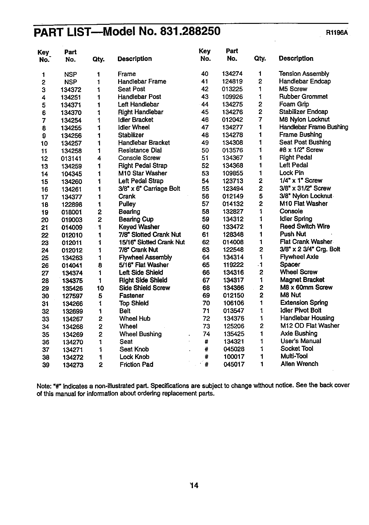 SEARS BIKE EXERCISER, contact the nearest SEARS Service Center throughout the United States