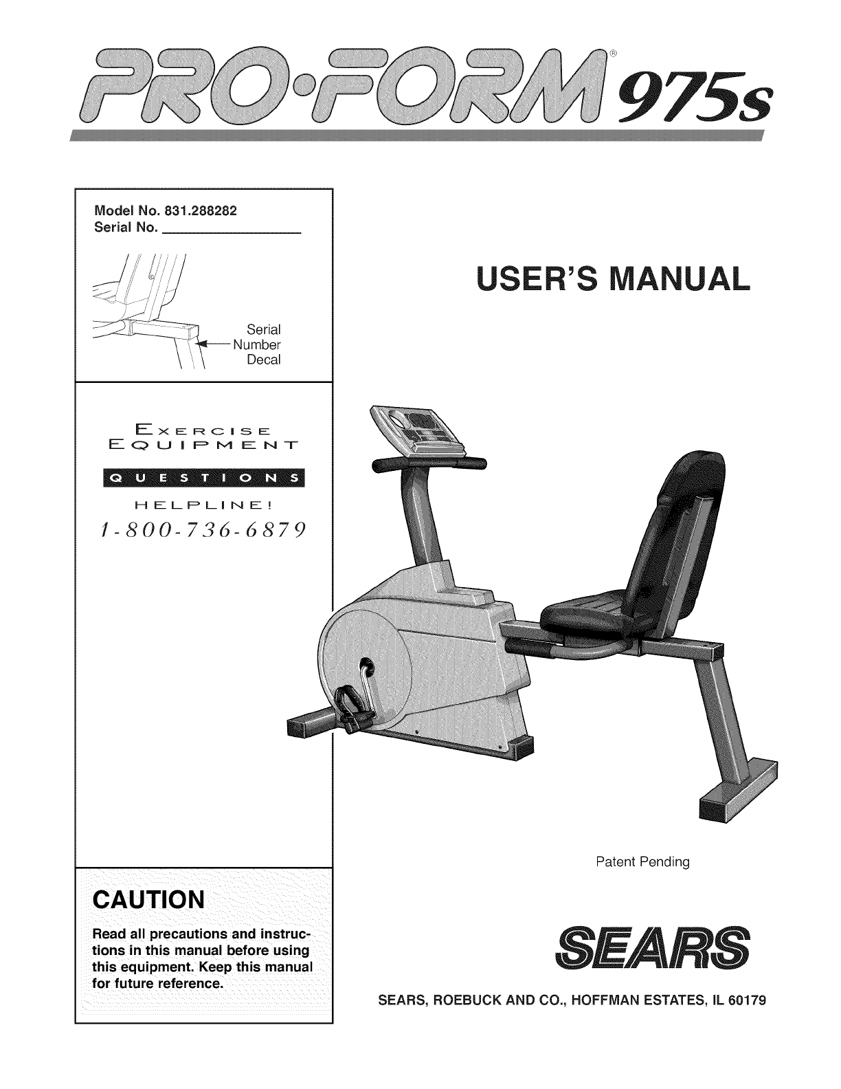 User Manual: Proform 831288282 831288282 PROFORM PROFORM 975S - Manuals and Guides View the owners manual for your PROFORM PROFORM 975S #831288282. Home:Fitness Equipment Parts:Proform Parts:Proform PROFORM 975S Manual