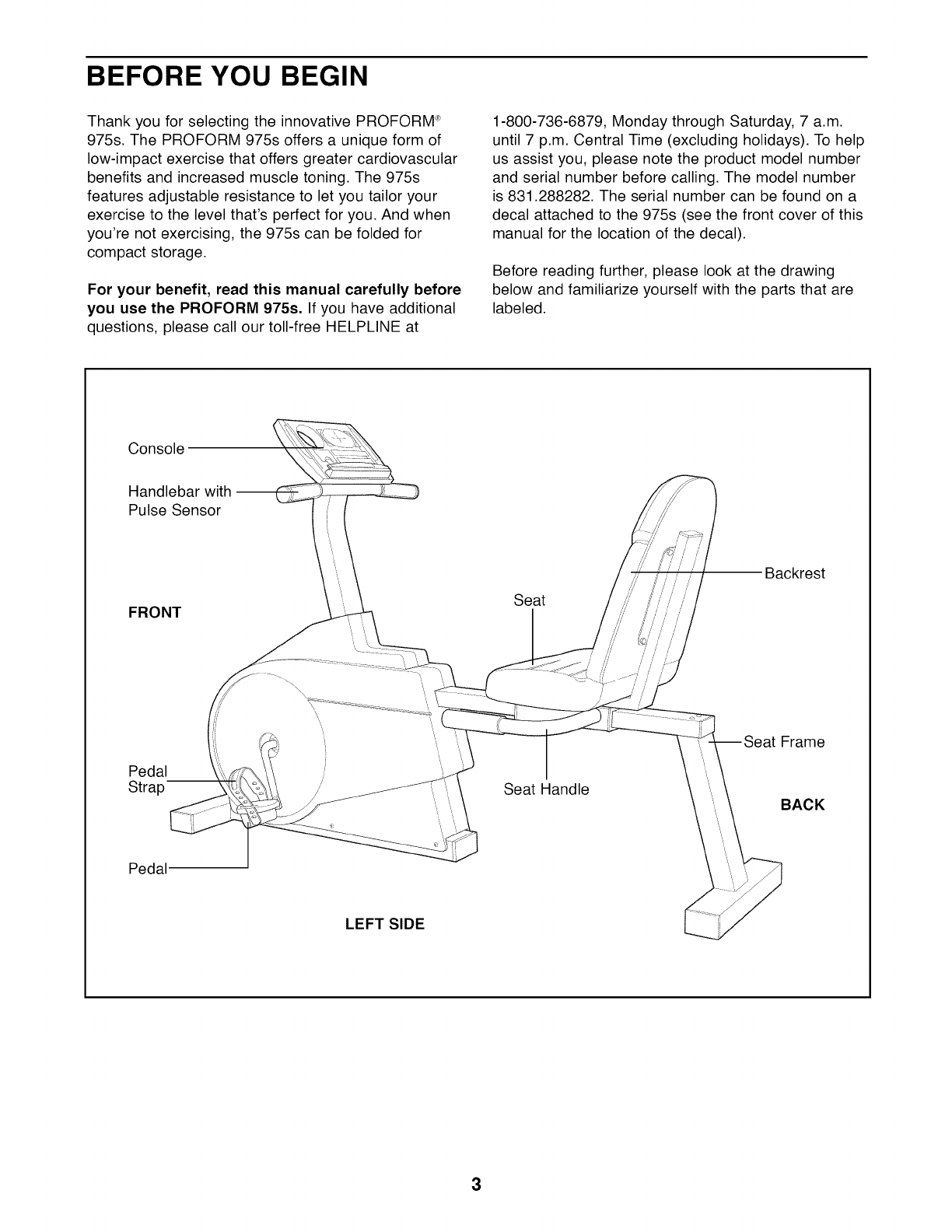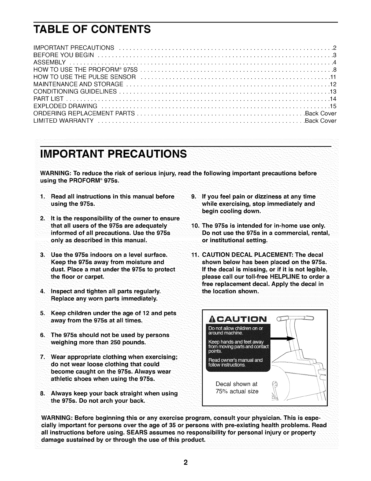 Proform 831288282 User Manual 975S Manuals And Guides L0901106