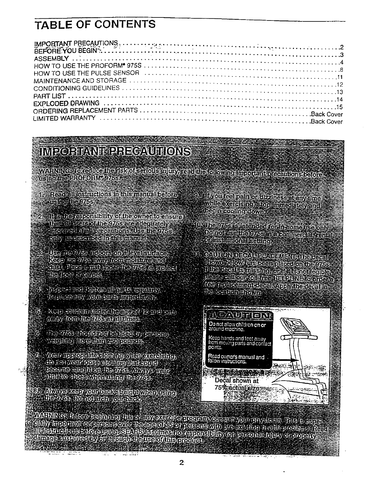 HOW TO USE THE PROFORM ° 975S ....................................................... 8