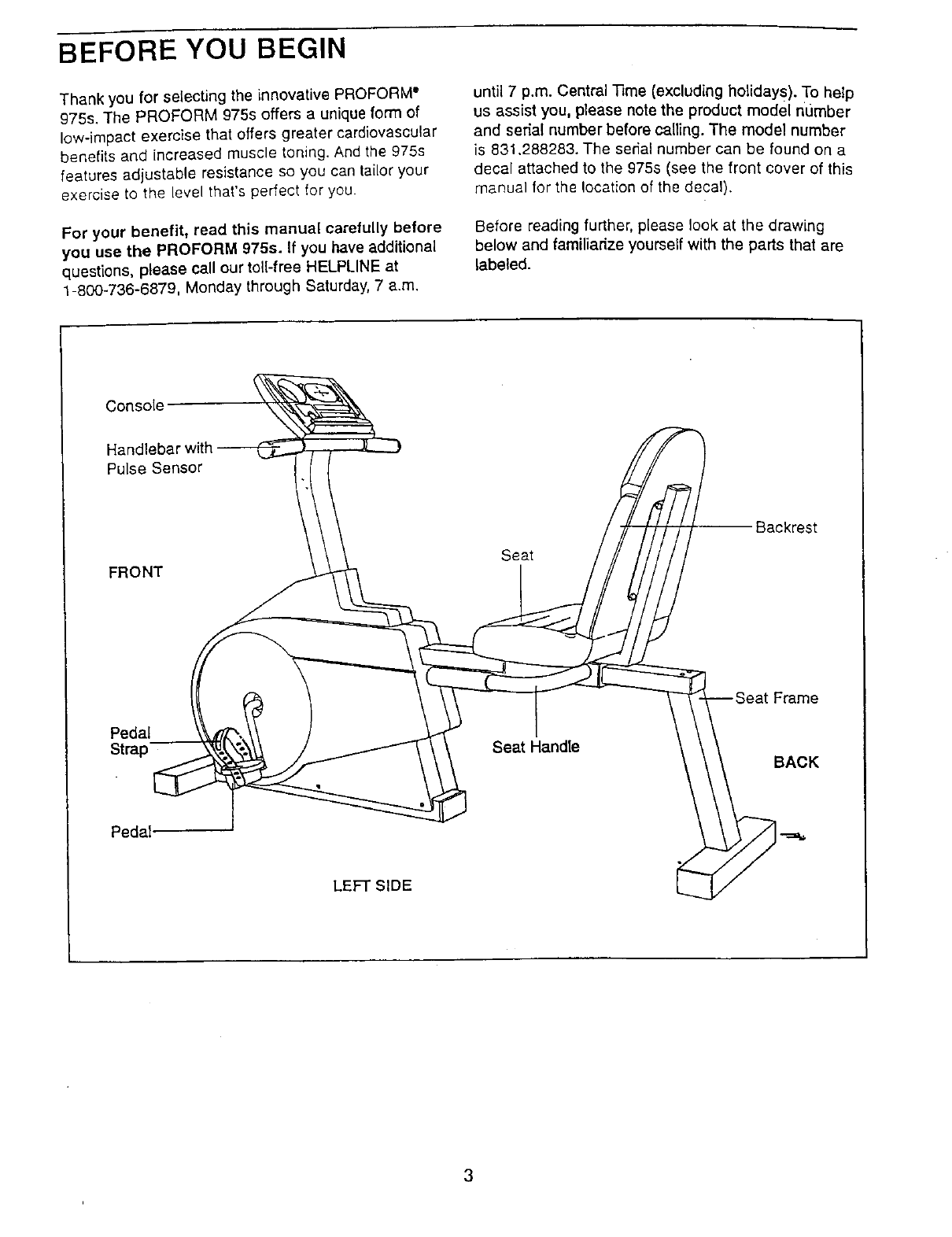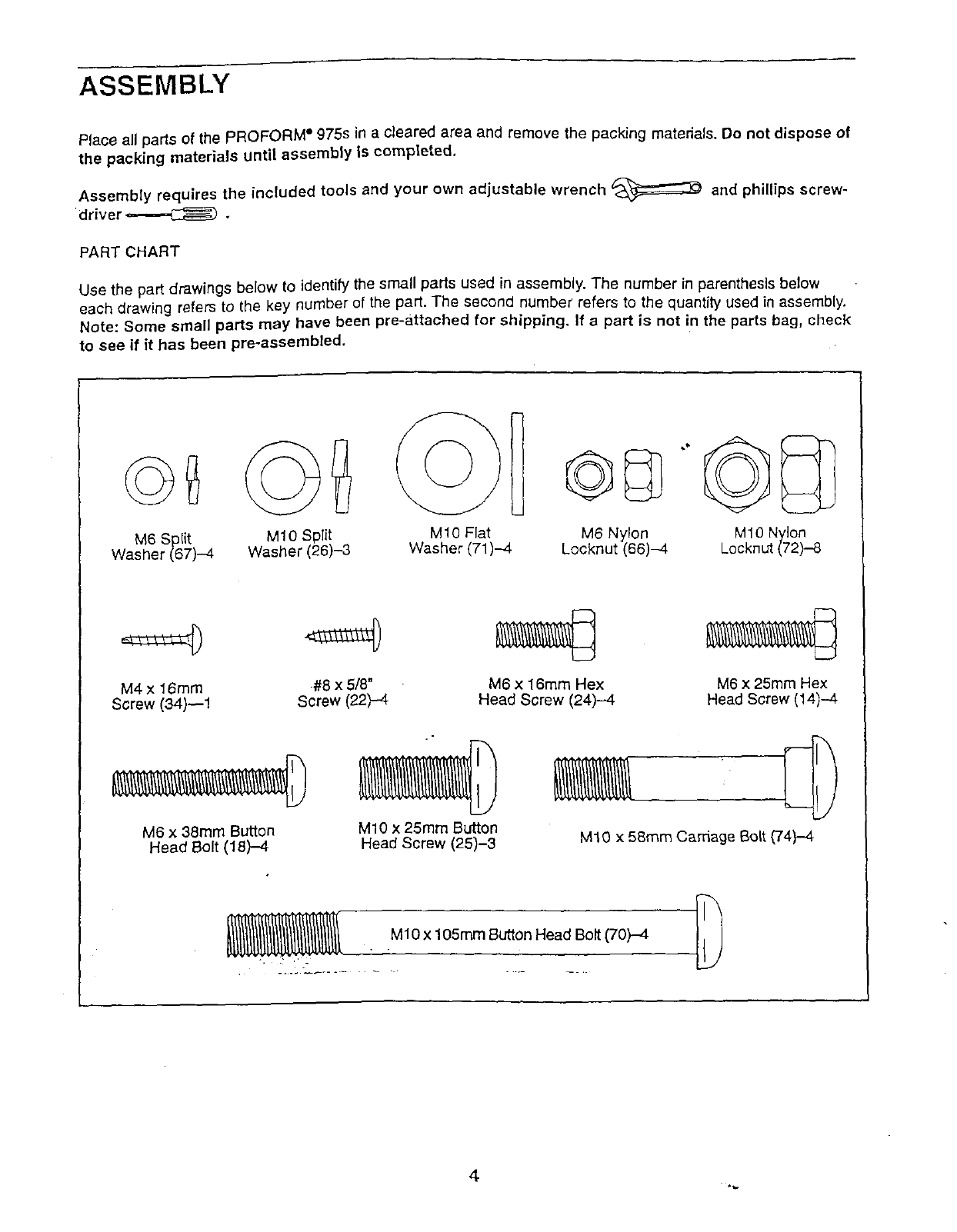 Place all parts of the pROFORM" 975s in a cleared area and remove the packing materials. Do not dispose of
