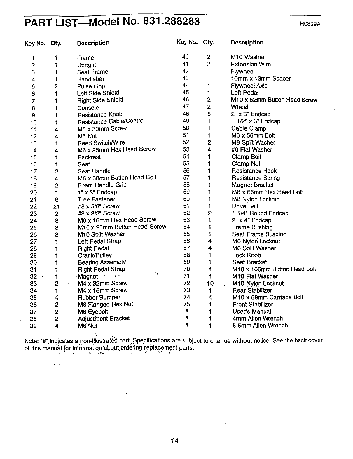 Proform 831288283 User Manual SEARS 975S CYCLE Manuals And Guides L9120033