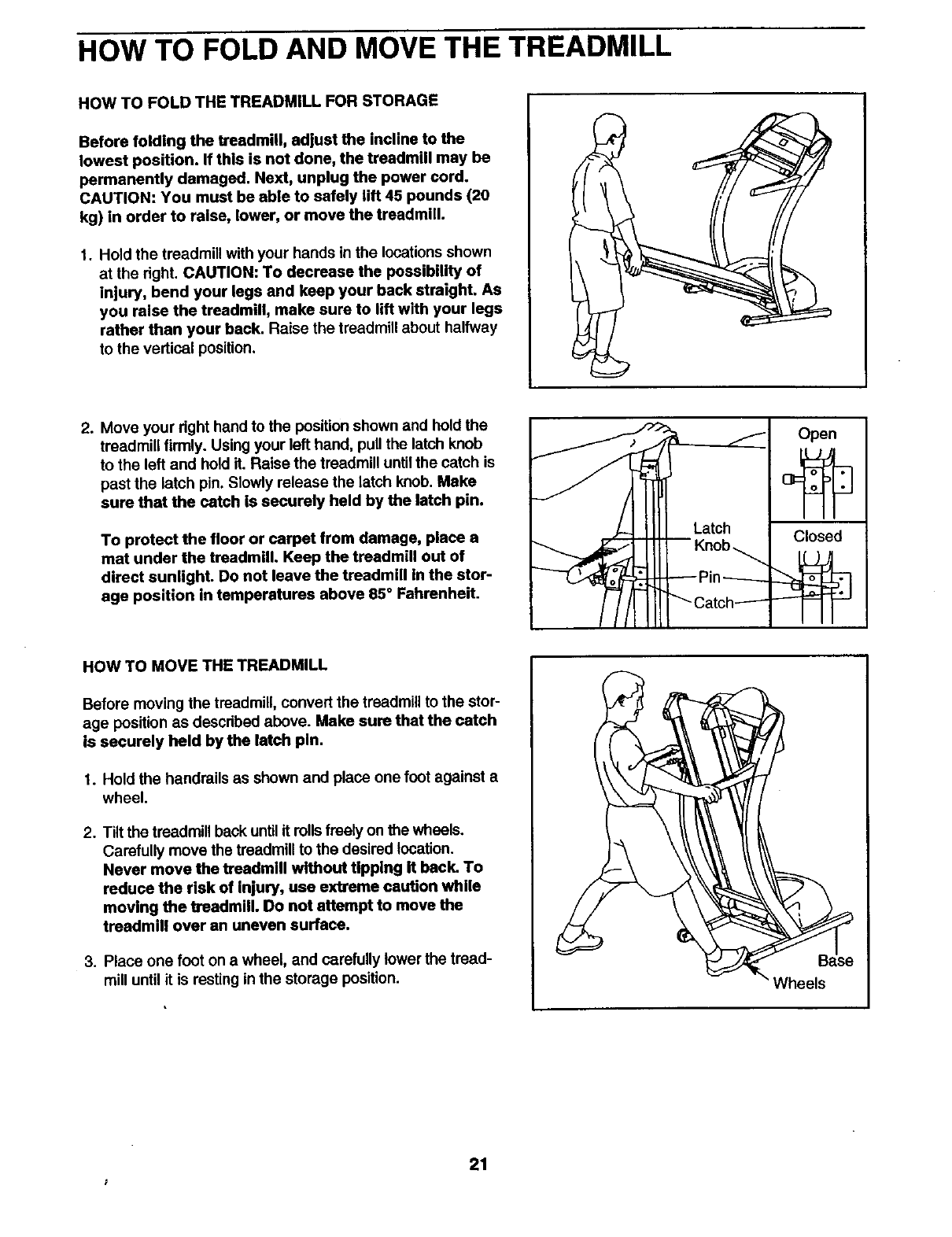 HOW TO FOLD AND MOVE THE TREADMILL .................................................. 21