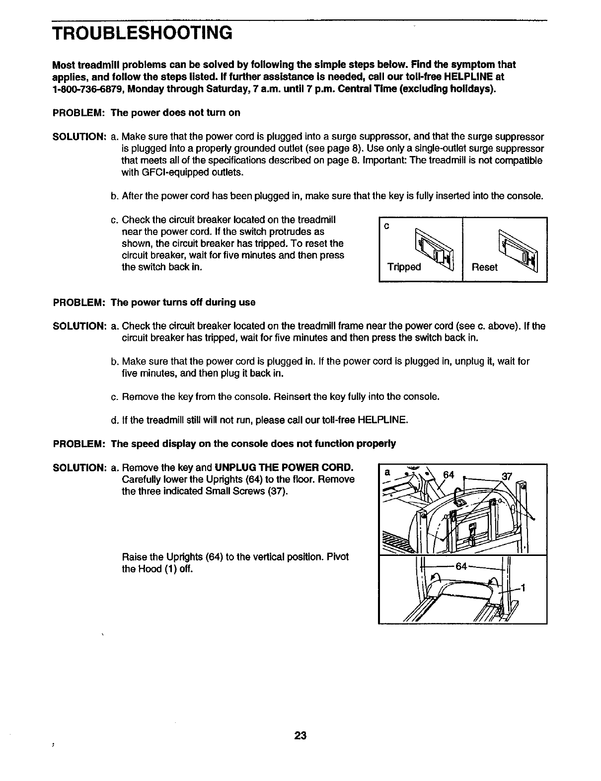 This warranty does not apply when the TREADMILL EXERCISER is used commerciallyor for rental pur-