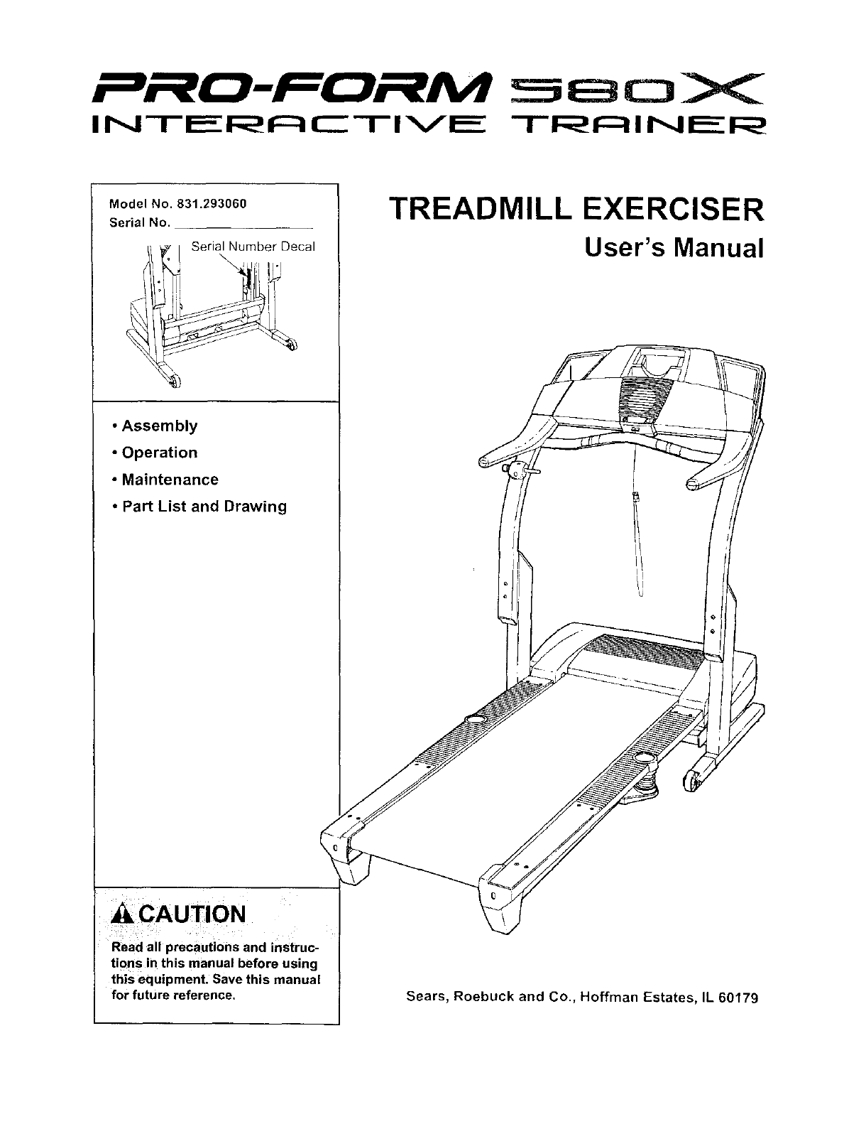 Proform 831293060 User Manual TREADMILL Manuals And Guides L0309012