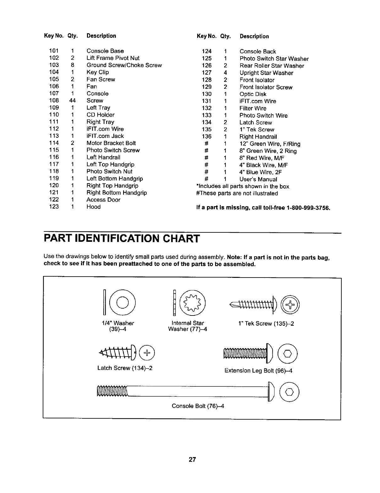 123 1 Hood If a part is missing, call toll-free 1-800-999-3756.