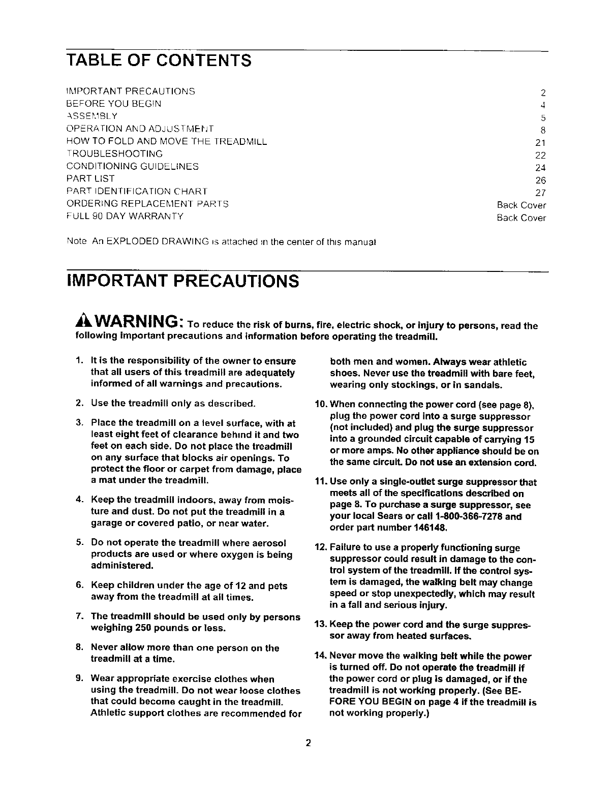 following important precautions and information before operating the treadmill.