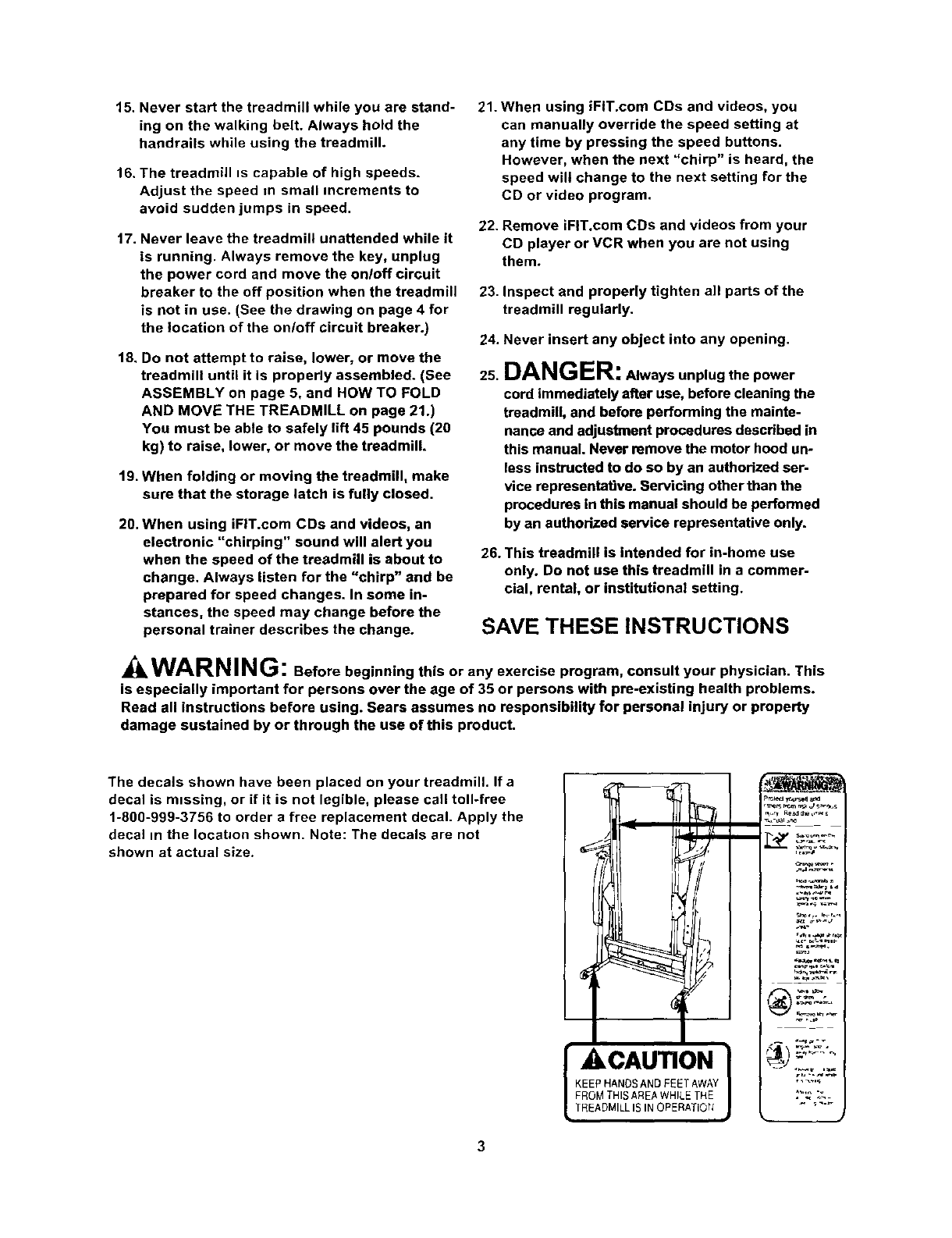 away from the treadmill at all times.