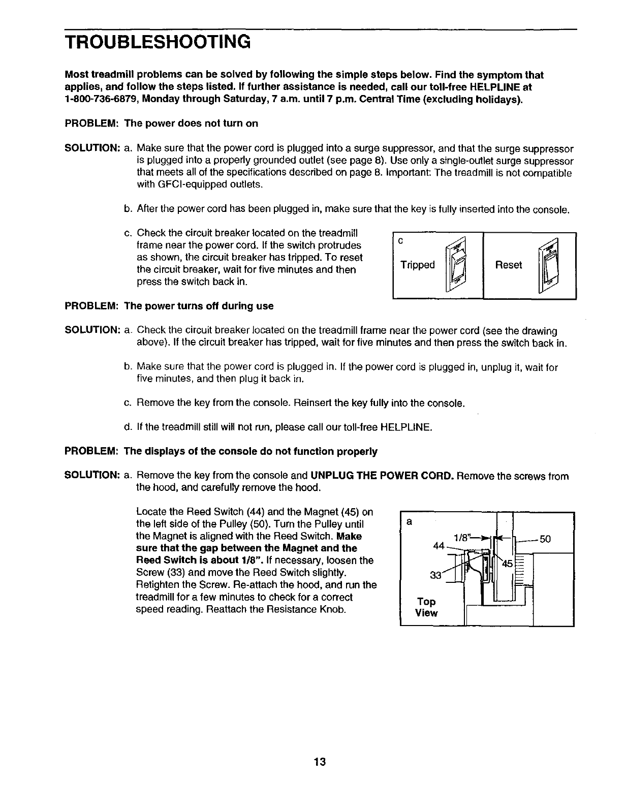 SEARS TREADMILL EXERCISER, contact the nearest SEARS Service Center throughout the United