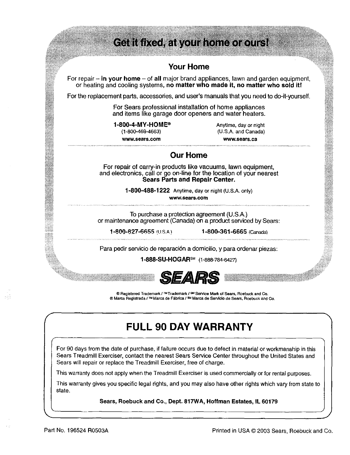 Part No. 196524 R0503A Printed in USA © 2003 Sears, Roebuck and Co.
