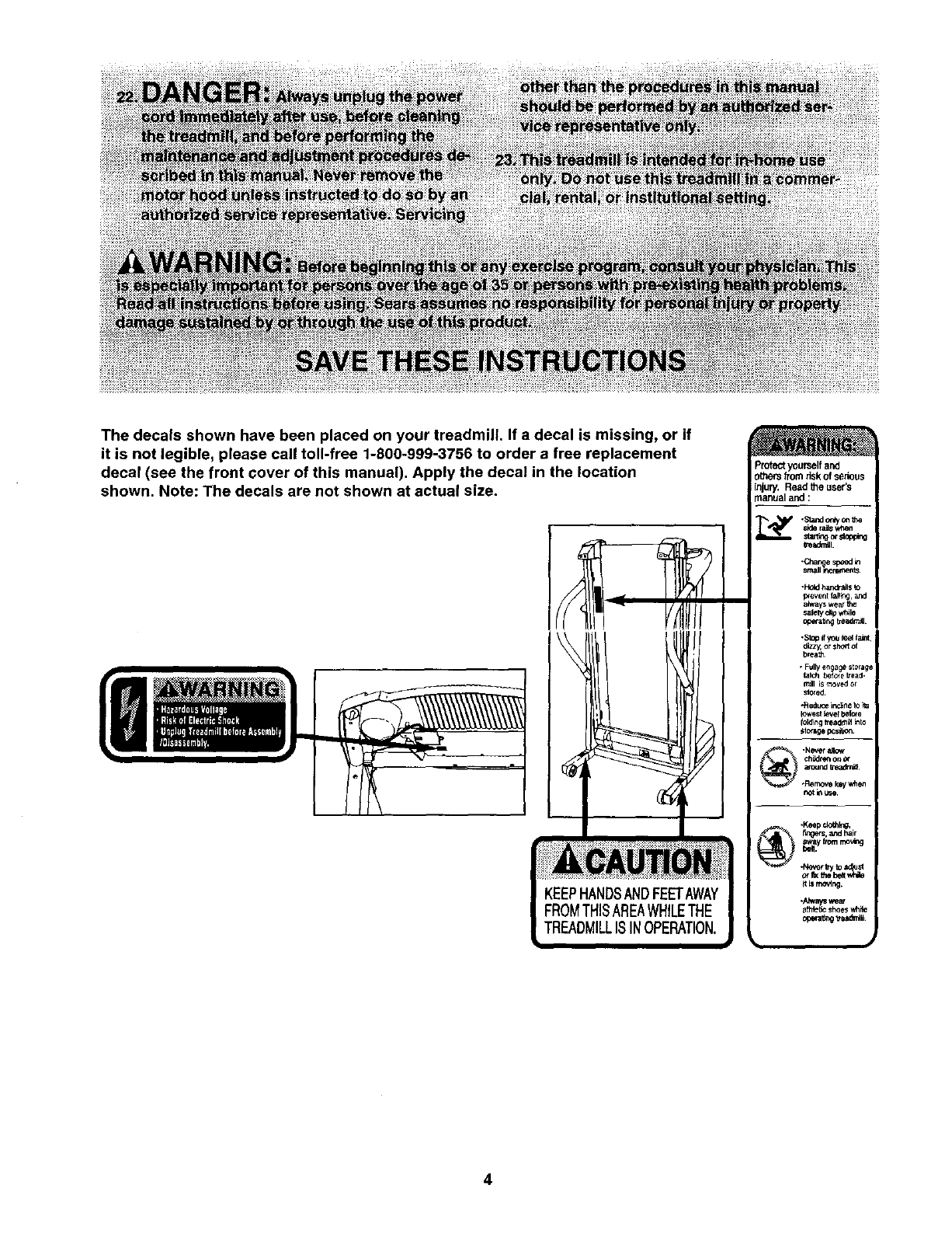 The decals shown have been placed on your treadmill• If a decal is missing, or if