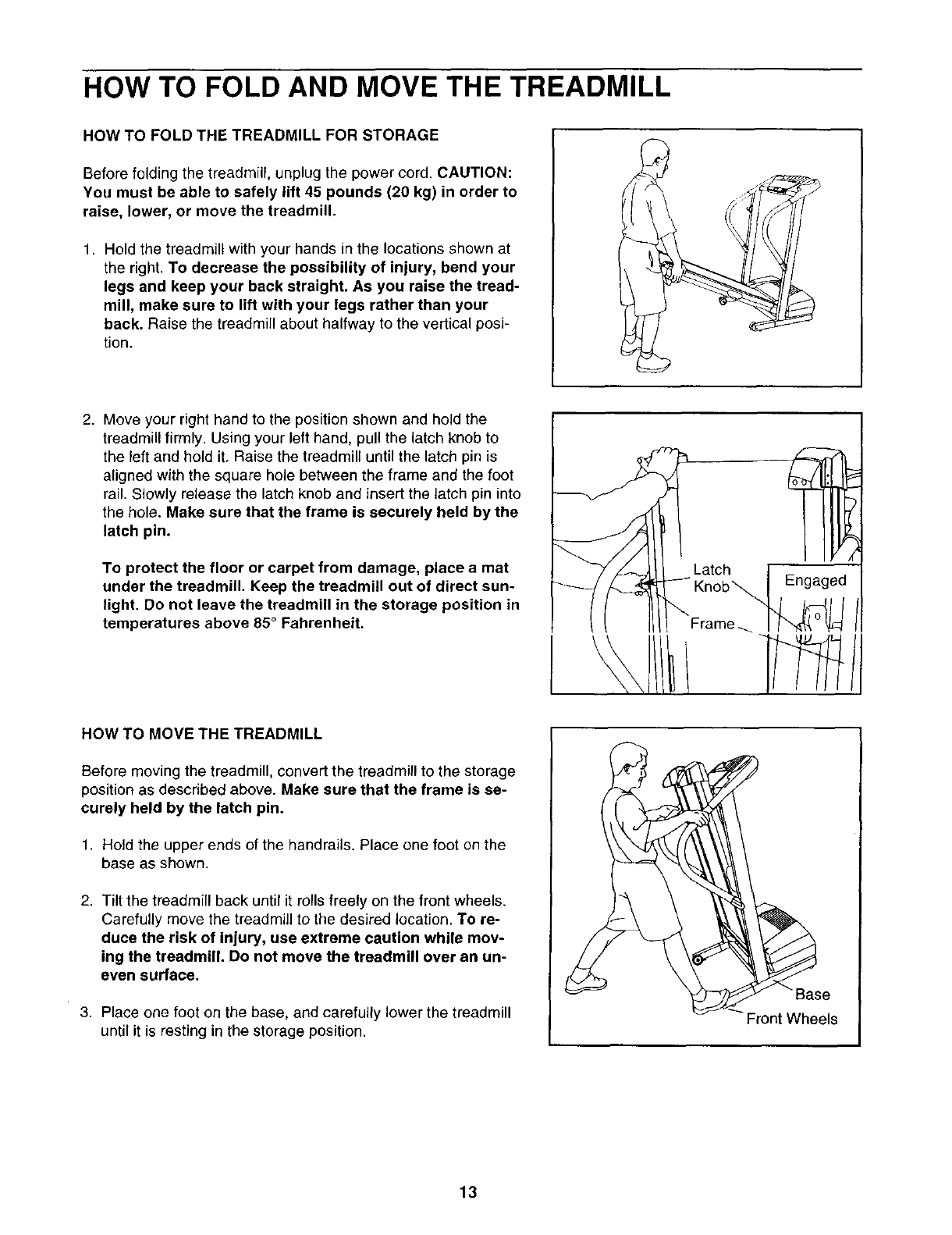 HOW TO FOLD AND MOVE THE TREADMILL .................................................. 13