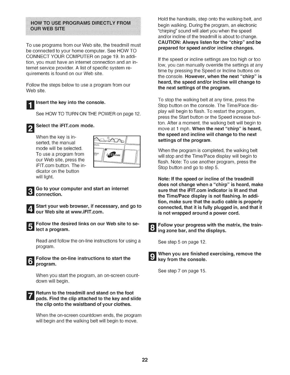 letic shoes. Never use the treadmill with bare