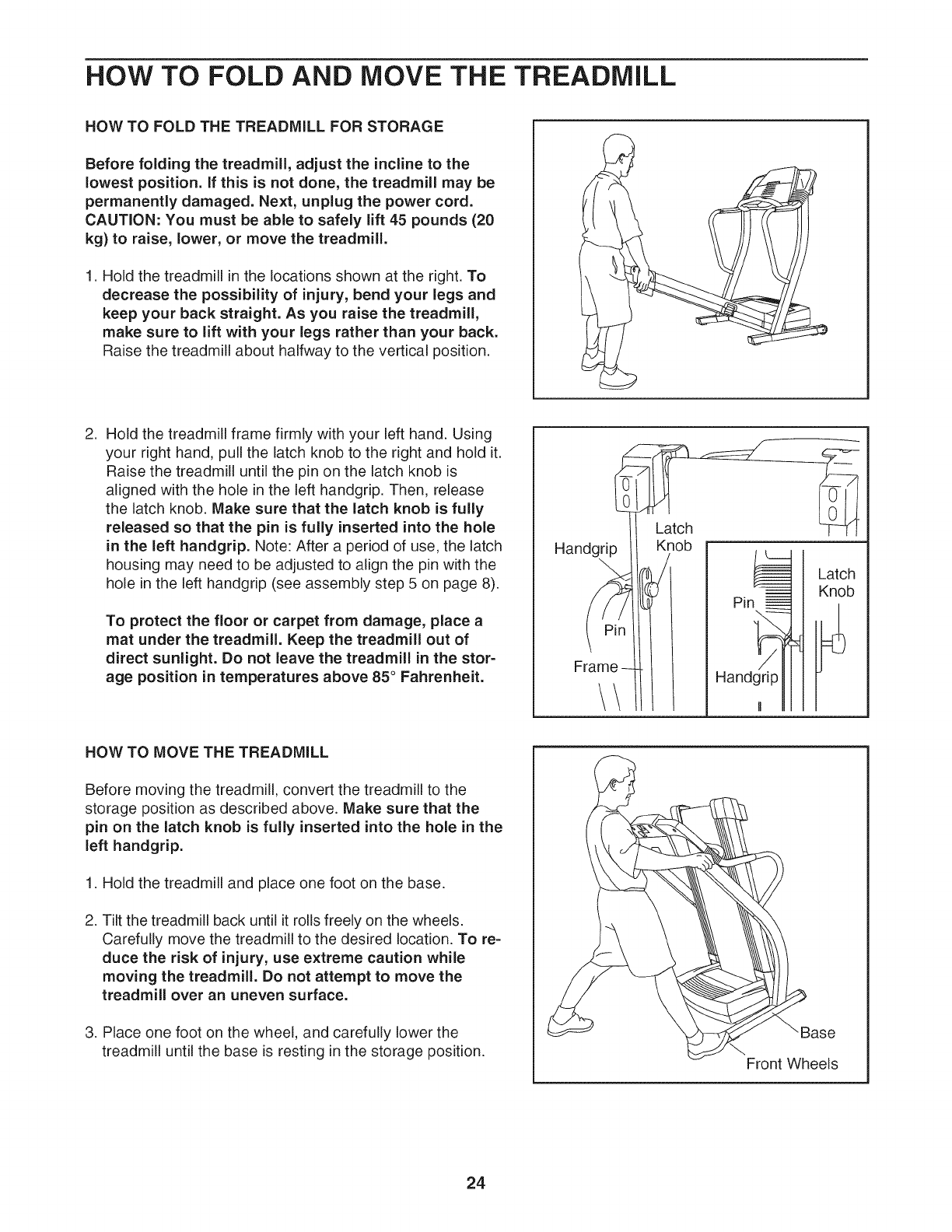HOW TO FOLD AND MOVE THE TREADMILL .................................................. 24