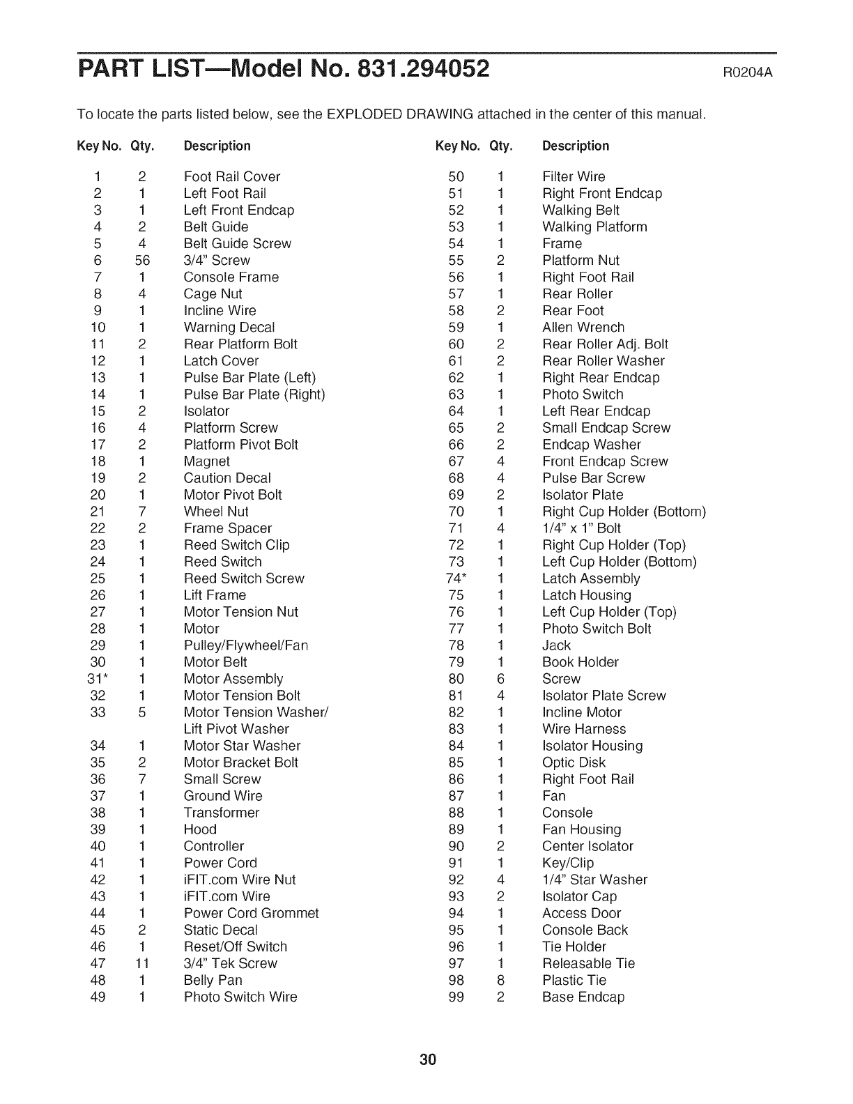 EXPLODED DRAWING--Model No. 831.294052 R0204A