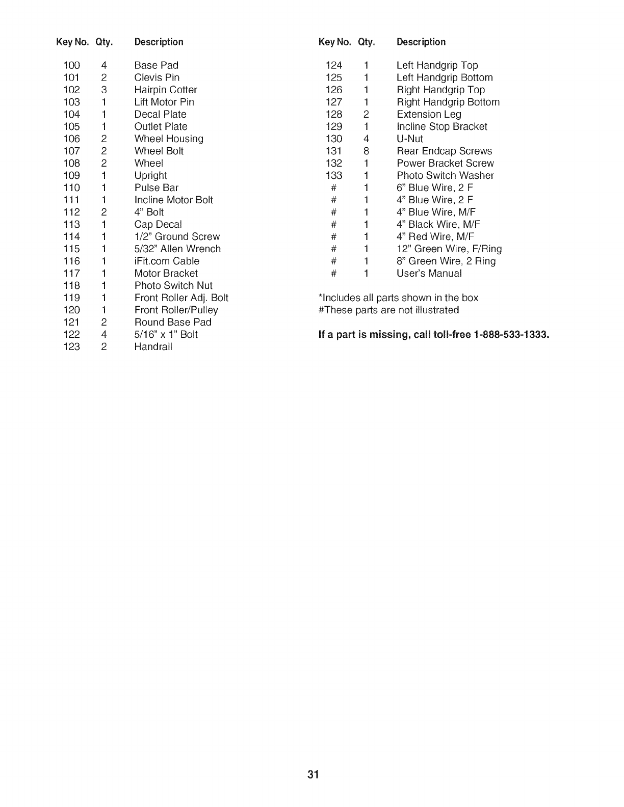 If a part is missing, call toll=free 1=888=533=1333.